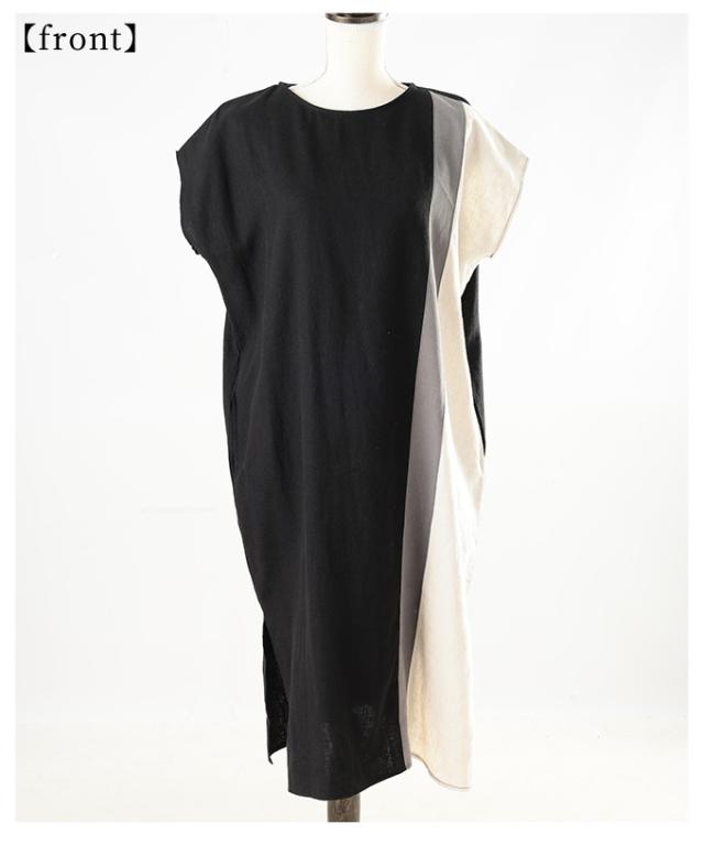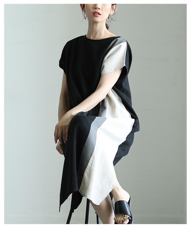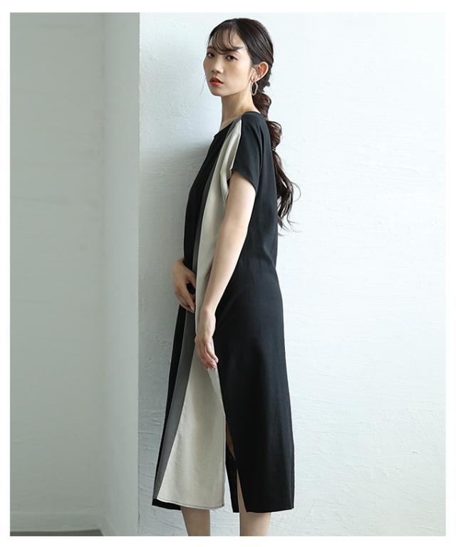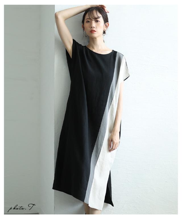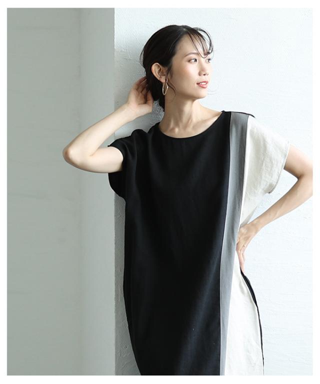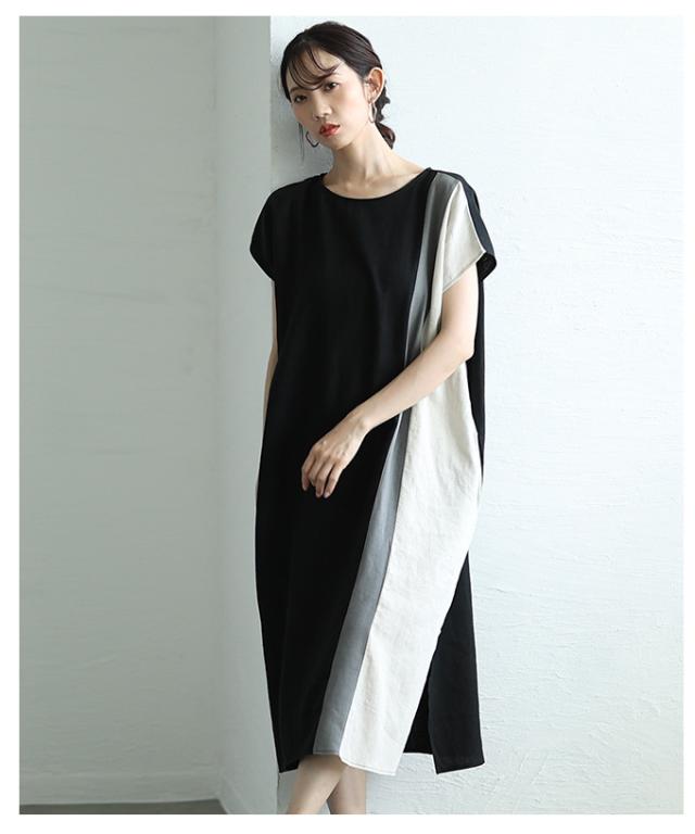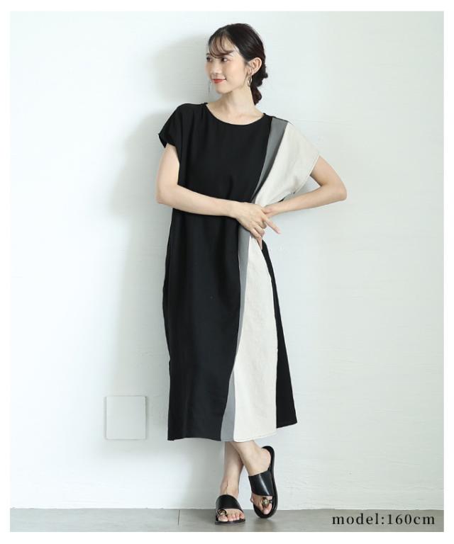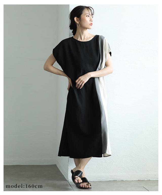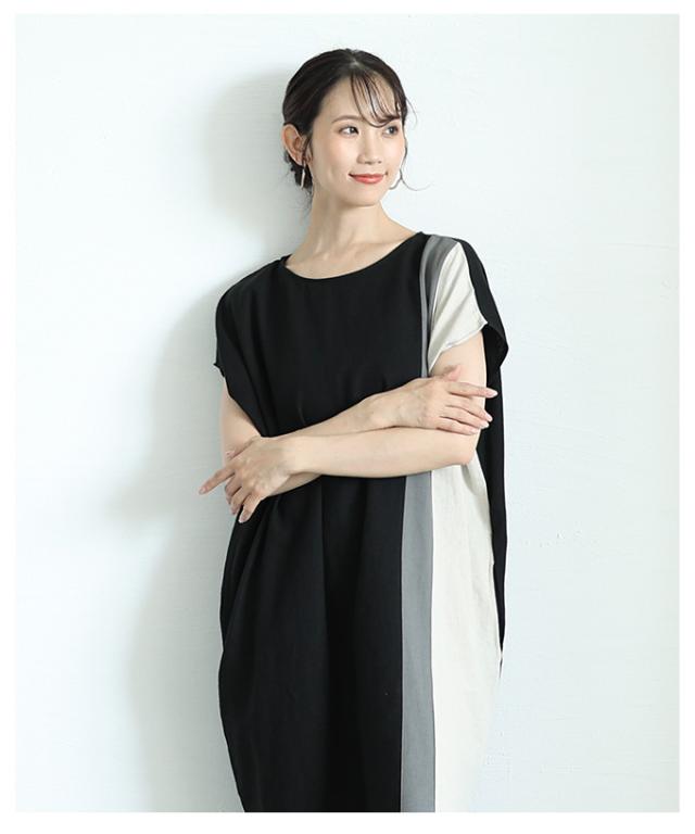 春新作 バイカラーでセンス光るフレンチスリーブワンピース レディース ファッション ワンピース チュニック ブラック 夏服 大人可愛い 20代 30代 40代 レディースファッション カジュアル 体型カバー おしゃれ きれいめ ママ サワアラモード sawaalamode aljun-1001s