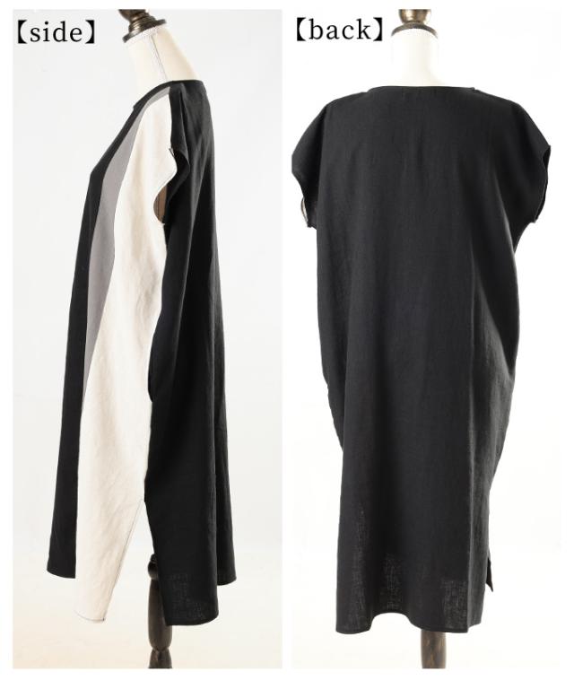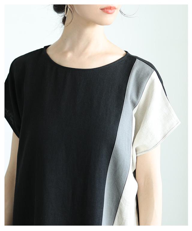 特徴: バイカラー フレンチスリーブ 綿 コットン 麻 リネン