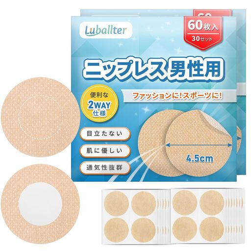 [LUBALLTER] 【便利な2つの仕様】120枚 ニップレス メンズ 男性用 肌に優しい 通気性 メンズ ニップレス 目立たない 筋トレ マラソン 擦れ対策 携帯用 収納ケース (肌色 60枚×2箱)