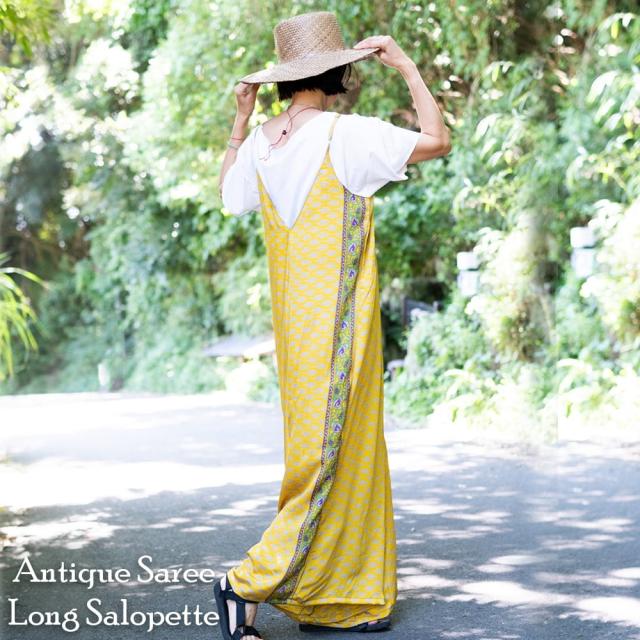 ストンとしたデザインが可愛い! アンティークサリーのロングサロペット / サロペット、オーバーオール、ジャンプスーツ、アンティークサリー、オールドサリー、リサイクル、パンツ、リラックスパンツ、オールドサリー、、ユニークデザイン、フェスファッション、夏 TIRAKITA(ティラキタ) エスニック衣料 【エスニック・アジアン衣料