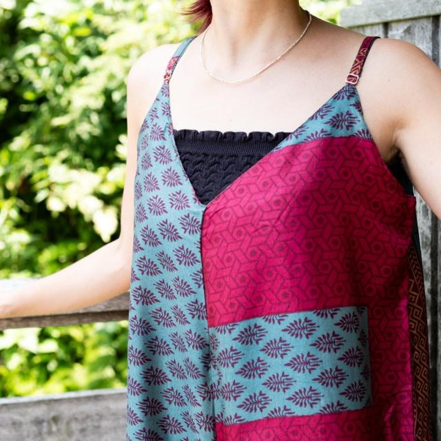 サロペット,オーバーオール,ジャンプスーツ,アンティークサリー,オールドサリー,リサイクル,パンツ,リラックスパンツ,オールドサリー,,ユニークデザイン,フェスファッション,夏
