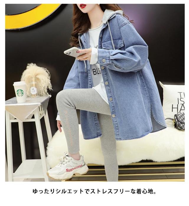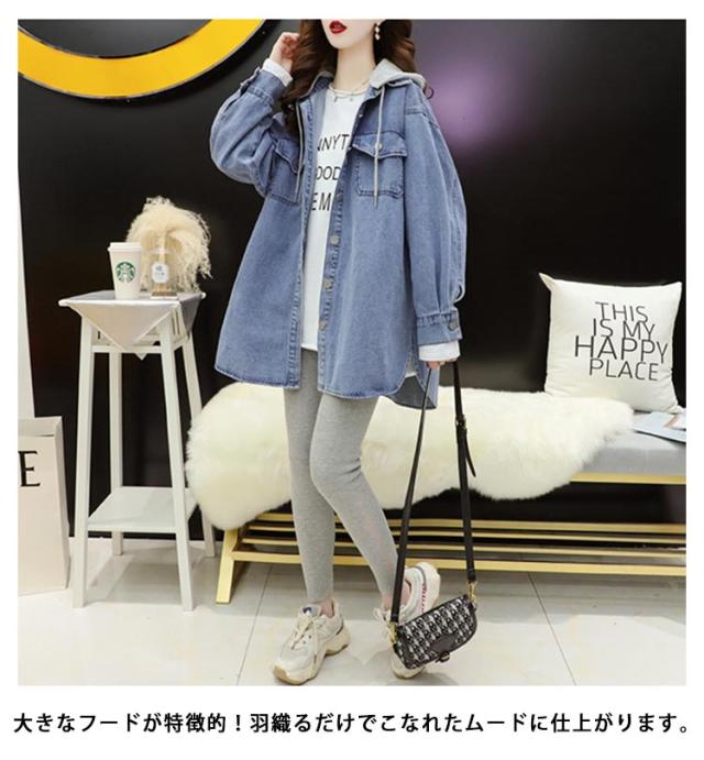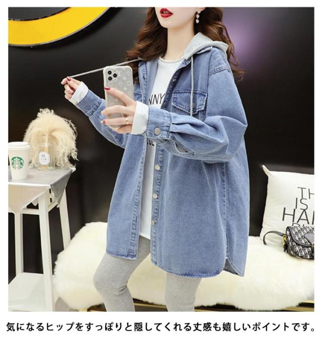 デニムパーカー デニムシャツ フード付き レディース トップス 羽織 ロングシャツ Gジャン デニムジャケット オーバーサイズ チュニック フード付き 体型カバー 前開き アウター 着回し 大人 カジュアル おしゃれ 通勤