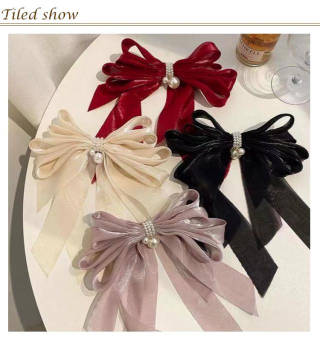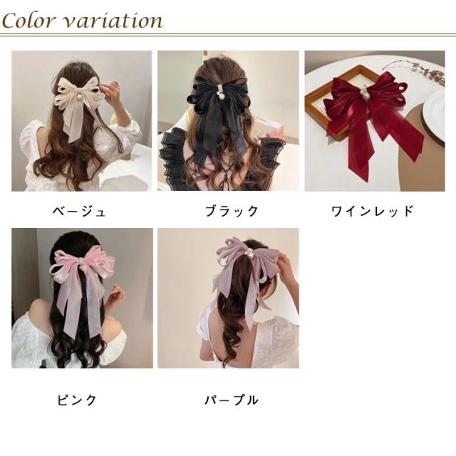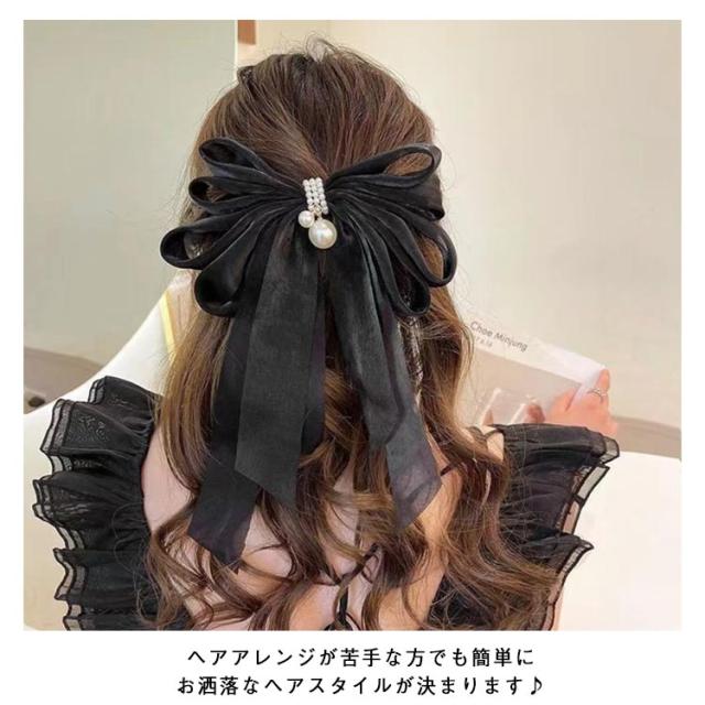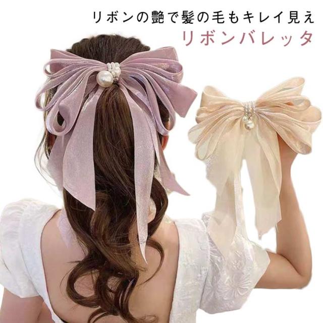 リボン バレッタ 大きめ ヘアアクセサリー チュール オーガンジー パール 揺れる 髪留め 髪かざり ヘアピン ヘアアレンジ ヘアアクセ お洒落 可愛い 上品 大人 韓国 髪飾り ヘアクリップ 結婚式 卒業式 入学式 人気 かわいい 韓国 人気 SNS インスタ 送料無料