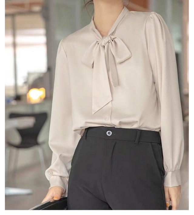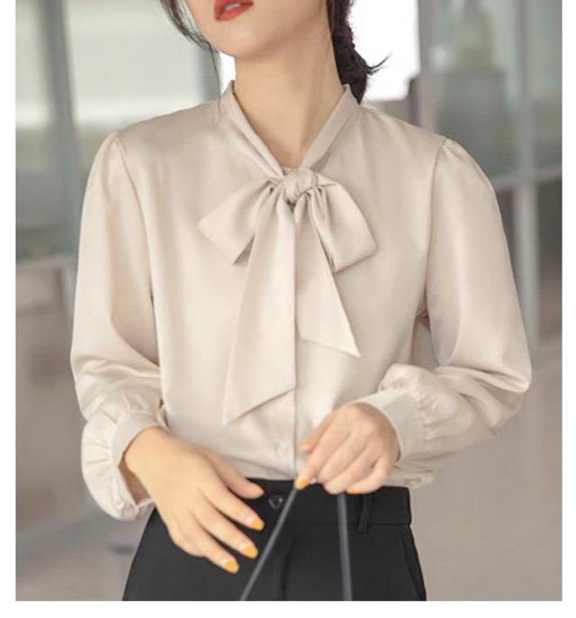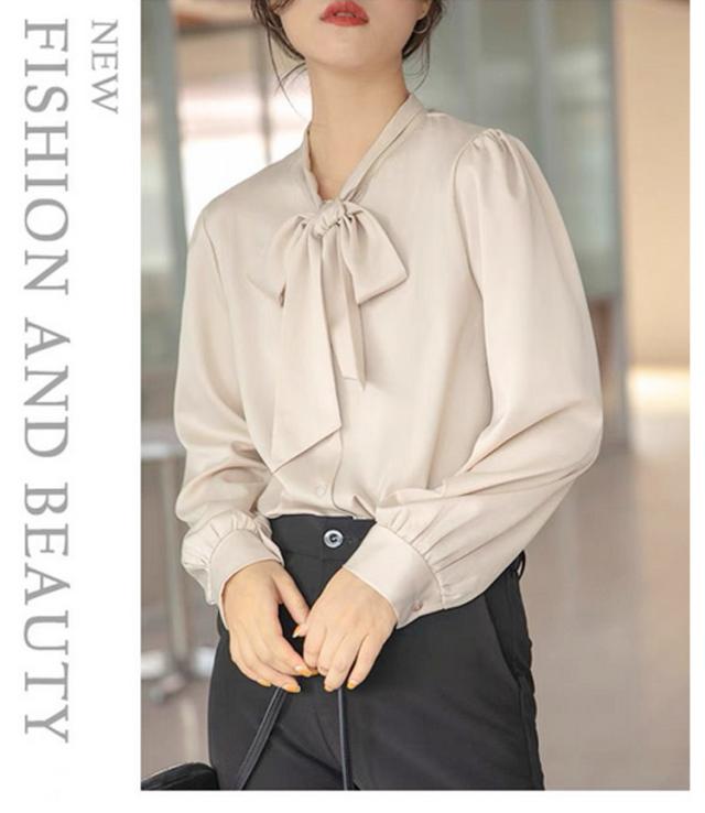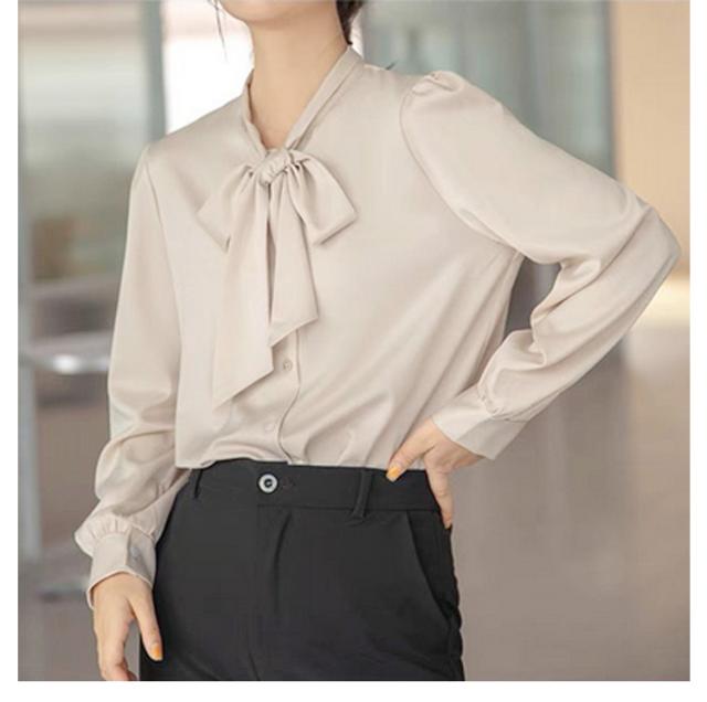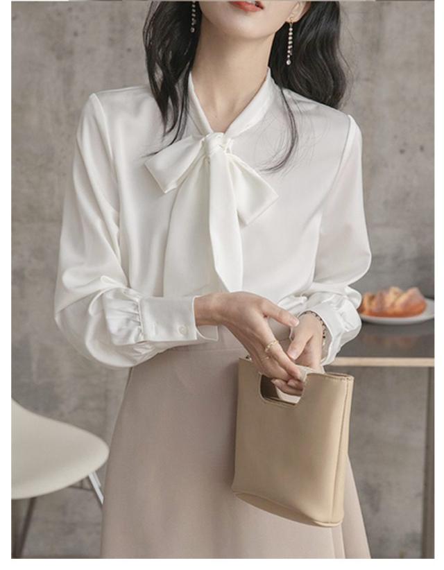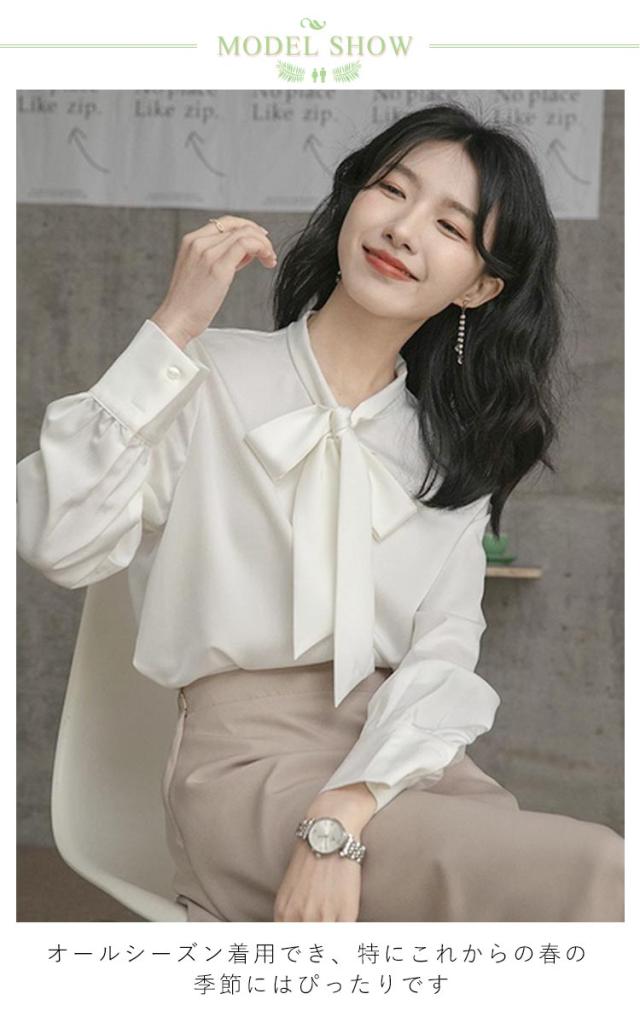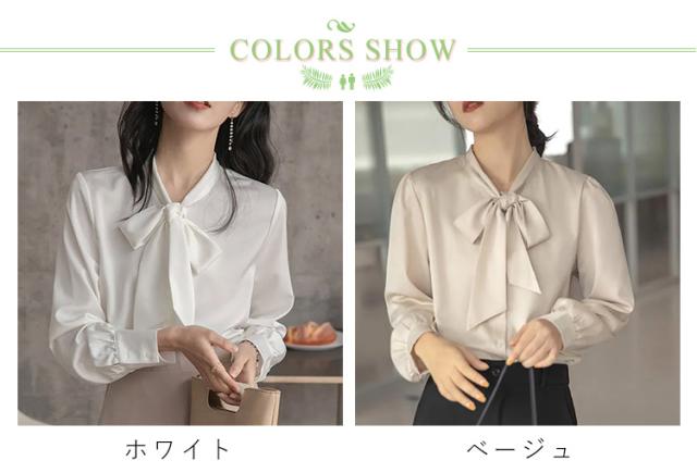 ブラウス レディース 長袖 ボウタイブラウス リボンタイ トップス シャツ 春 秋 シフォン ボウタイ シャーリング リボン付き シャツ フォーマル とろみ素材 ゆったり 無地 オケーション きれいめ トップス 白 母 ビジネススーツ フォーマル ビジネス 通勤 送料無料