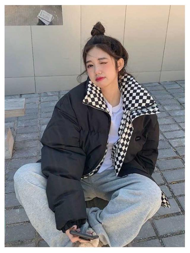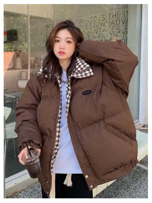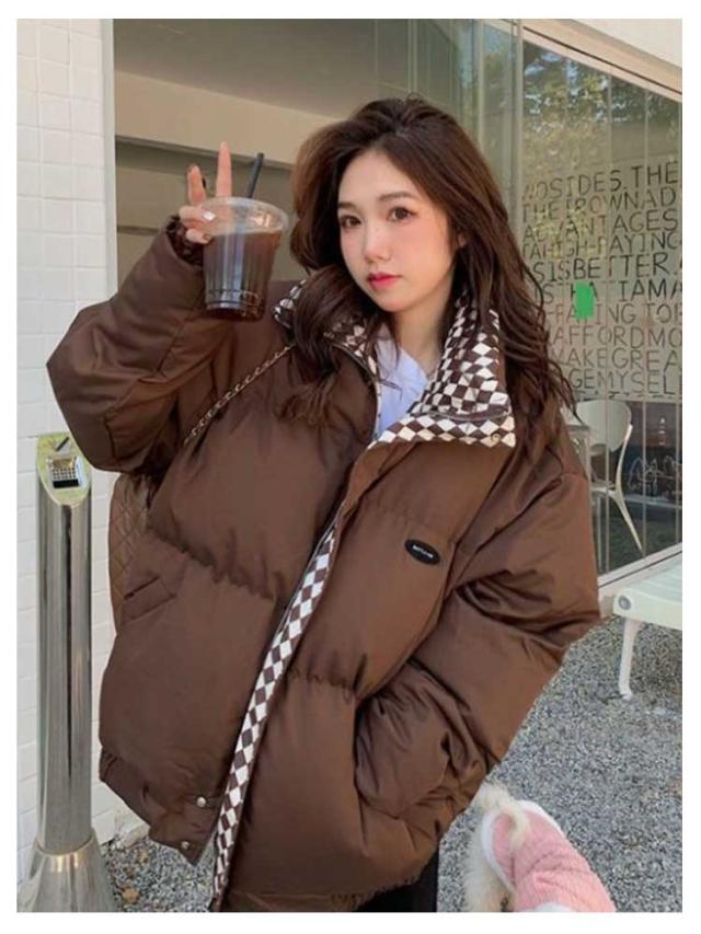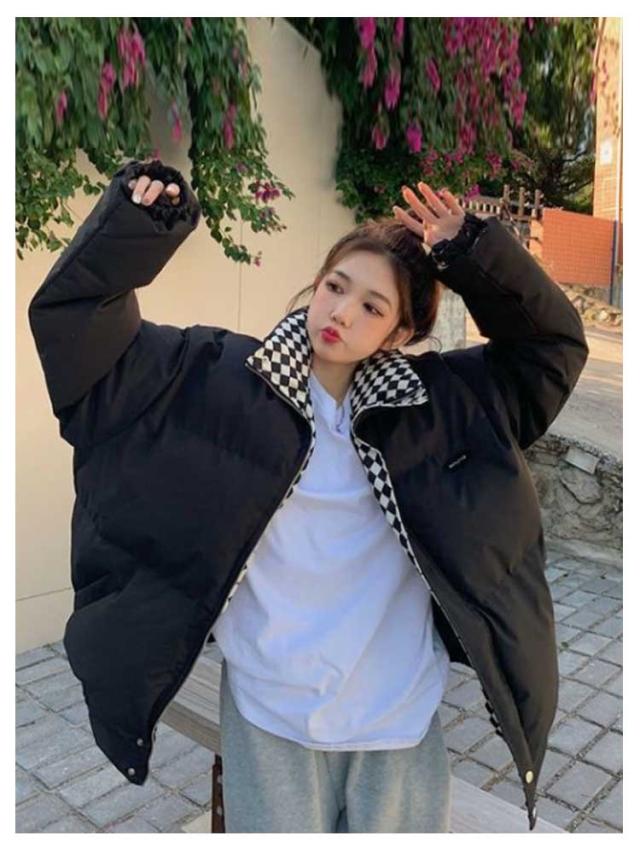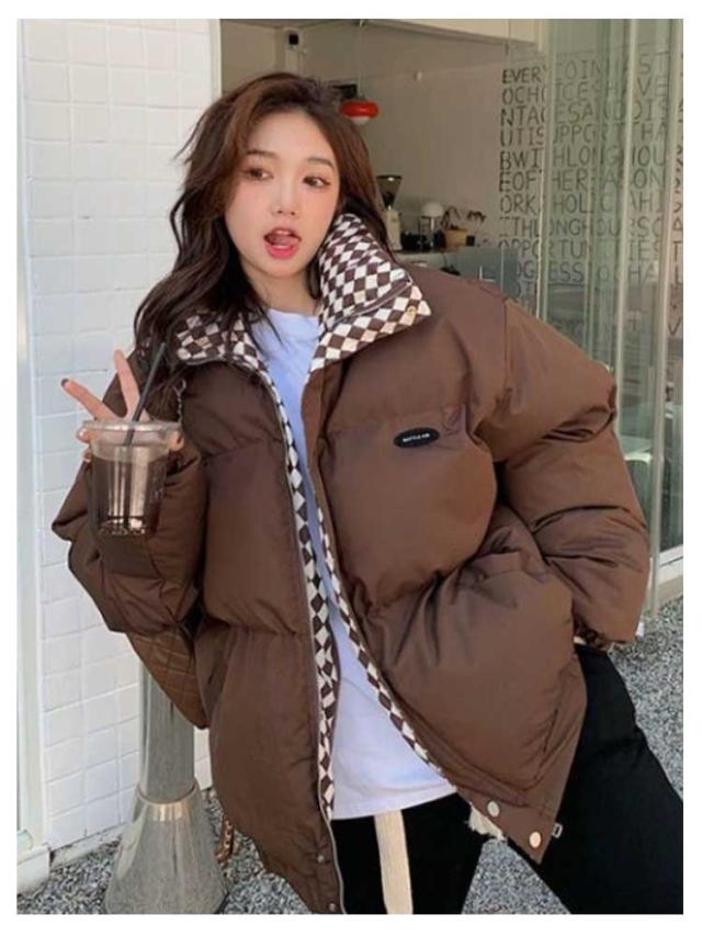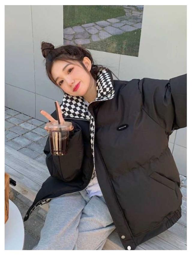 中綿ジャケット チェック柄 配色 スタンドカラー 立ち襟 レディース 厚手 アウター B系 ヒップホップ 防寒 カジュアル 通学 女子 学生 暖かい ボリューム 冬