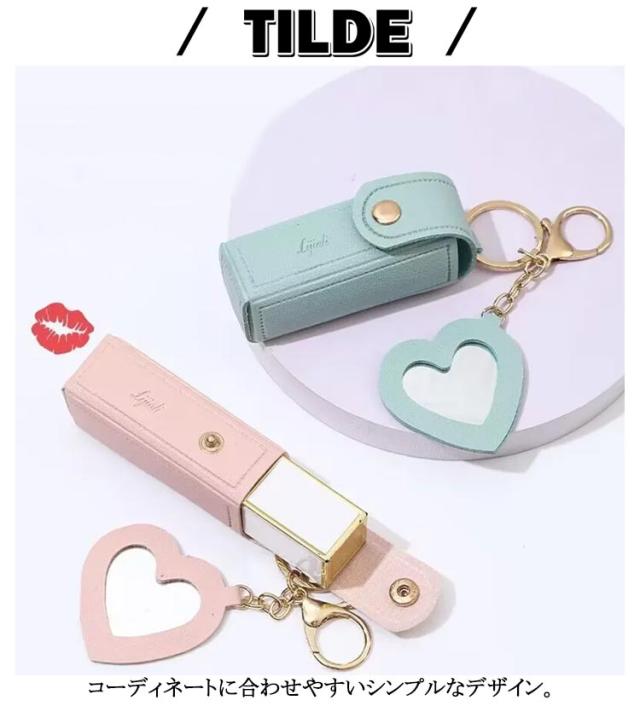 2個セット リップケース ミラー付き キーホルダー リップポーチ 1本 2本 口紅入れ 口紅ケース ミニ 小さめ ポーチ ケース コスメポーチ カラビナ付 ハート 鏡付き 化粧ポーチ PU革 大人 かわいい おしゃれ 小物収納ケース 韓国 女性 誕生日 プレゼント 【送無】