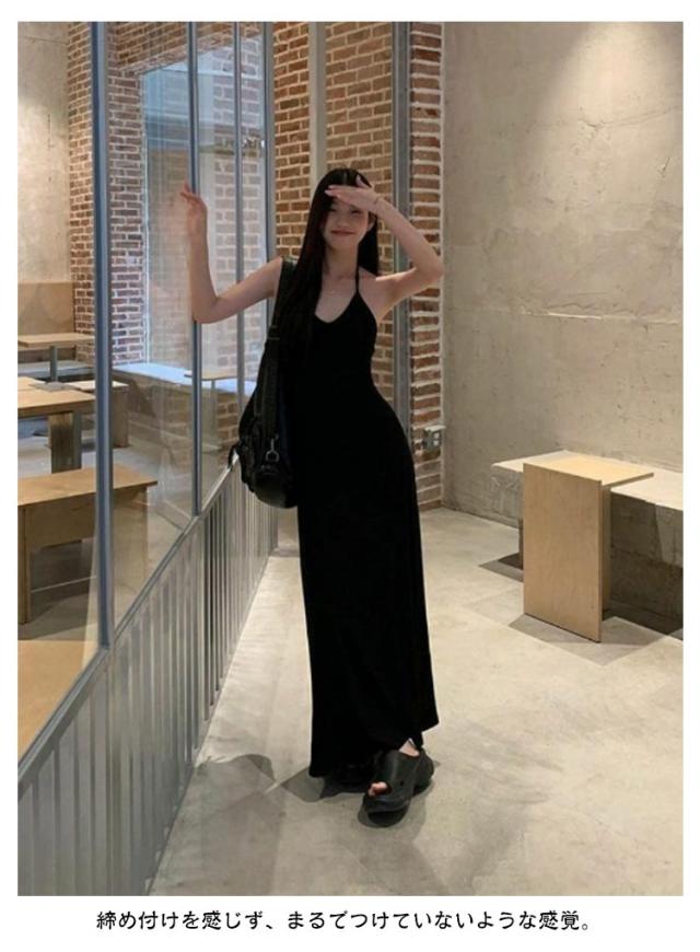 カップ付き ワンピース キャミワンピ Aライン キャミソールワンピース 吊りスカート ロング丈 ハンガーネック ホルターネック 夏 レディース きれいめ 体型カバー 送料無料 重ね着風 ファッション オシャレ カワイイ シンプル