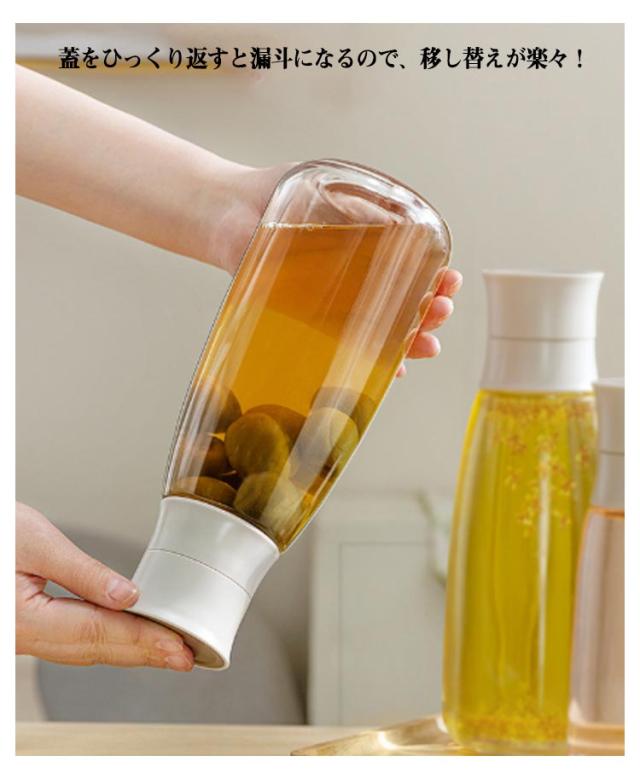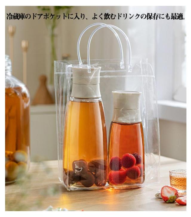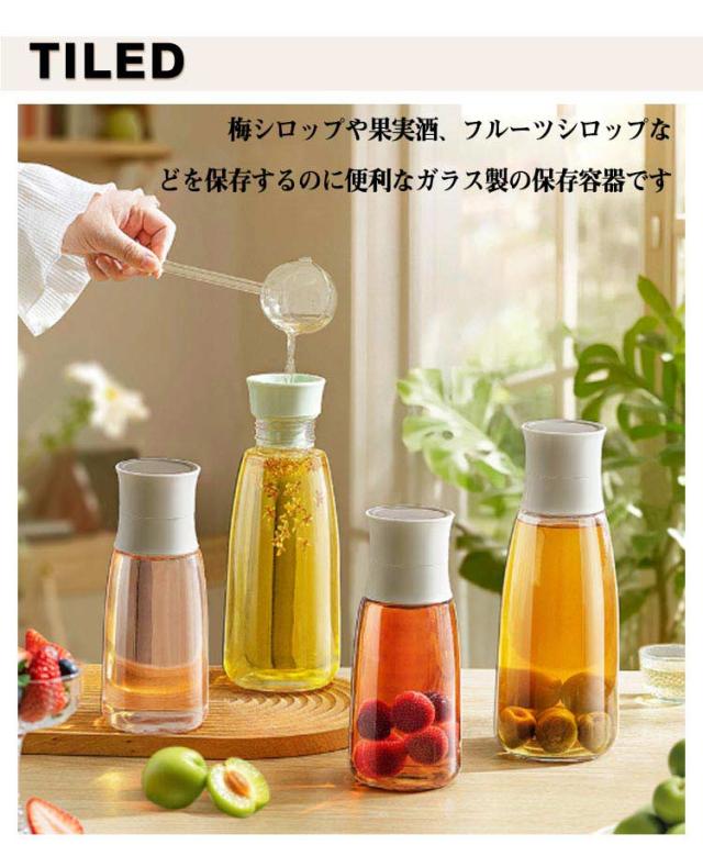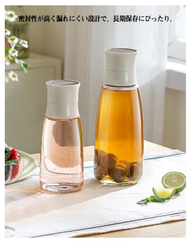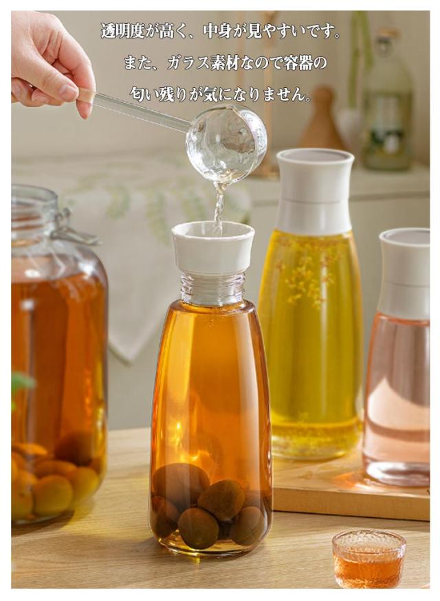 | 梅シロップ用に ガラス保存容器 2本セット 600ml/1000ml 梅シロップや果実酒、フルーツシロップなどを保存するのに便利なガラス製の保存容器です。 蓋をひっくり返すと漏斗になるので、移し替えが楽々! 透明度が高く、中身が見やすいです。また、ガラス素材なので容器の匂い残りが気になりません。 耐熱ガラス製であるため、熱湯消毒できます。 密封性が高く漏れにくい設計で、長期保存にぴったり。 注口部分にフィルターがセットされているのでそのまま注げます。 冷蔵庫のドアポケットに入り、よく飲むドリンクの保存にも最適。 | |
