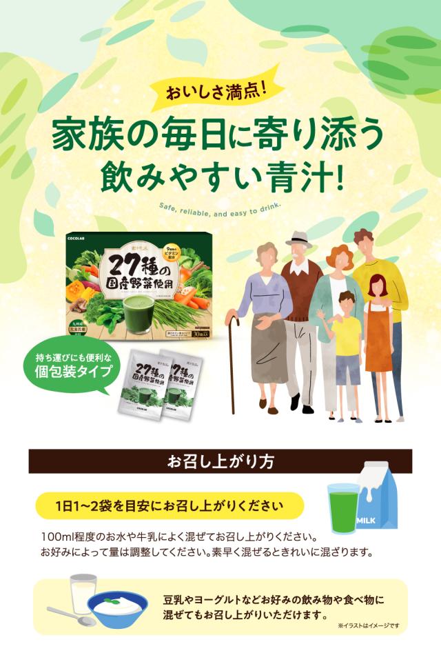 青汁生活 粉末 27種の国産野菜 3g×30包 純国産大麦若葉 酵素 乳酸菌 ダイエット 送料無料 COCOLAB