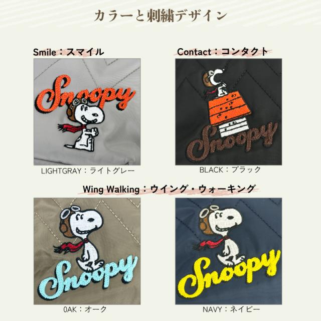 ・スヌーピーたちの刺繍をポイントにしたカジュアルなデザインです。