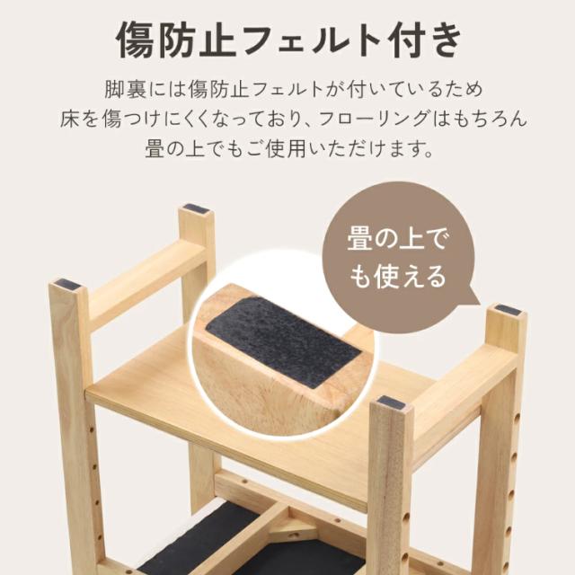 脚裏には傷防止フェルトが付いているため、床を傷つける心配がなく、