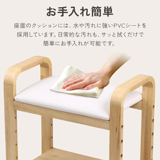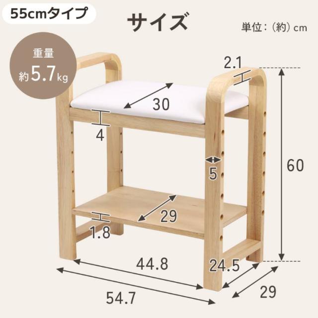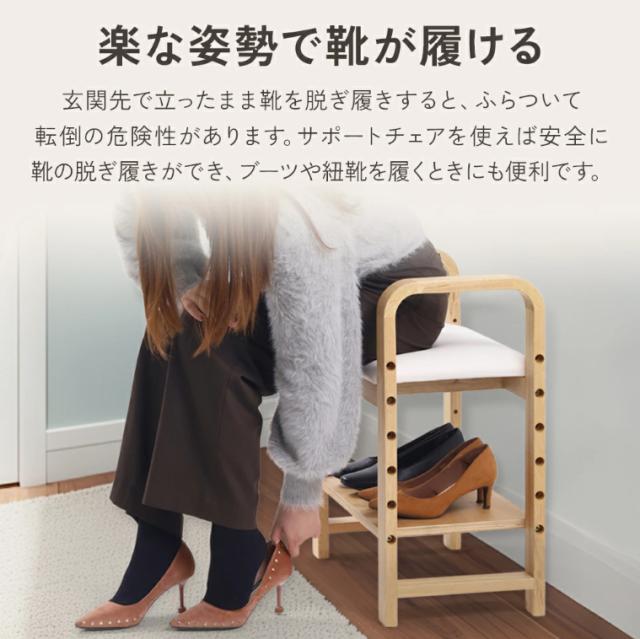 玄関イス サポートチェア 天然木 玄関椅子 幅55cm 腰掛け 介護 高齢者 玄関ベンチ 玄関 椅子 イス いす チェア スツール 木製 ベンチ 高さ調節 手すり付き 肘掛け シンプル おしゃれ 収納 玄関用 リビング 靴 サポート 補助 シューズラック