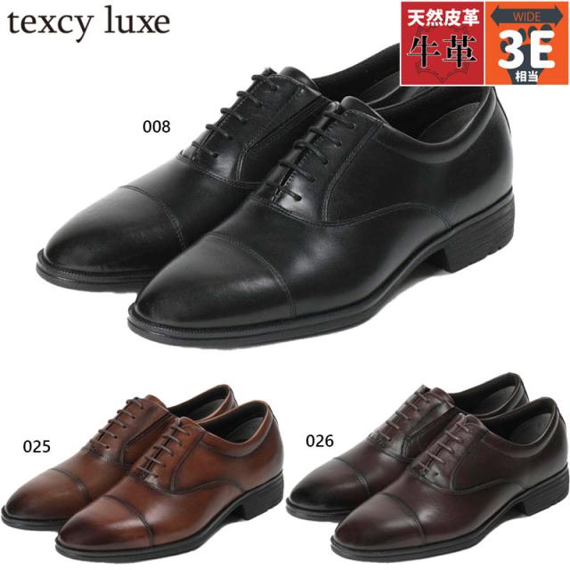 3E相当 幅広 ワイド テクシーリュクス メンズ テクシーリュクス ビジネス 靴 シューズ 結婚式 冠婚葬祭 天然皮革 ストレートチップ 消臭繊維 軽量 ブラック 黒 ブラウン 茶色 送料無料 texcy luxe TU7041