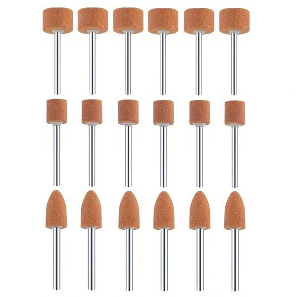 KIMLONTON 軸付砥石 円柱型と砲弾型 3mm軸径 ミニルーター・リューター・電動ドライバー用研磨砥石18本組 均一な粒子・耐摩耗性・低粉塵