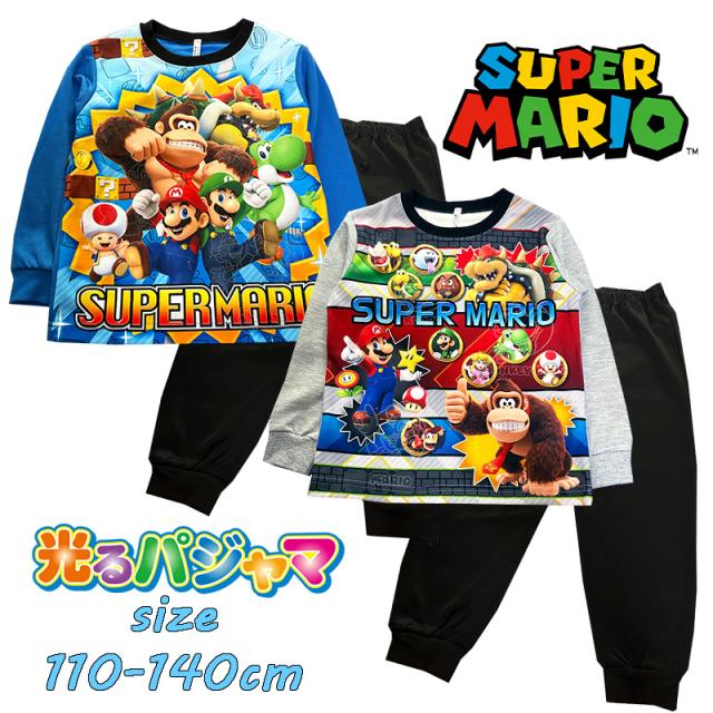 メール便送料無料 バンダイ スーパーマリオ 光るパジャマ ダンボールニット プリント 長袖 男の子 2812762/47646