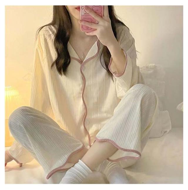 長袖 パジャマ Vネック 前開き 春 ルームウェア セット ルームパンツ レディース 秋 お洒落 大人 部屋着 寝巻き 旅行 入院 夏 吸汗 通気 Vネック ゆったり リラックス 薄手 肌に優しい