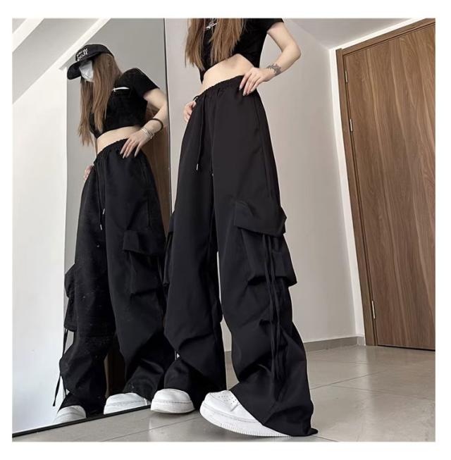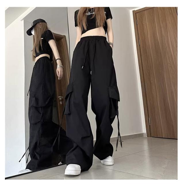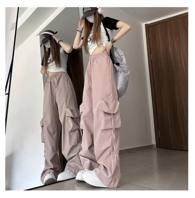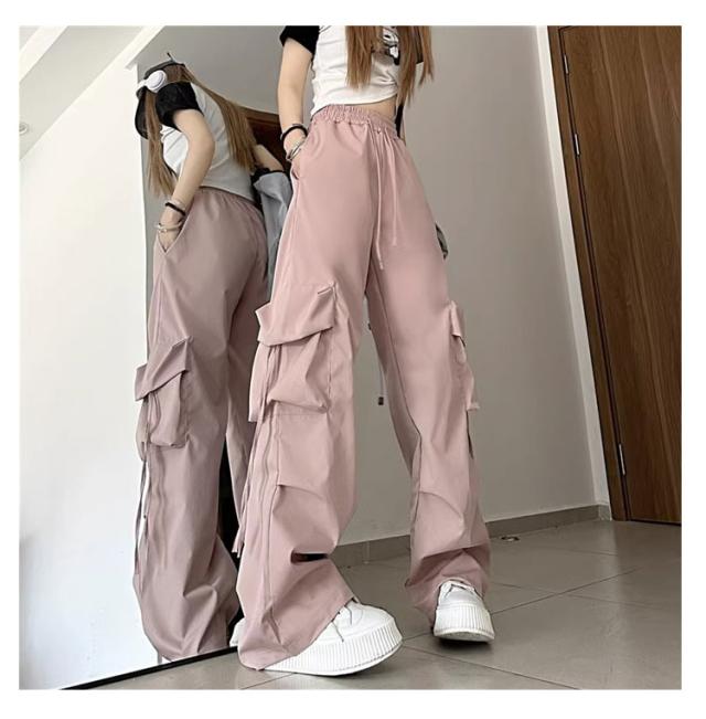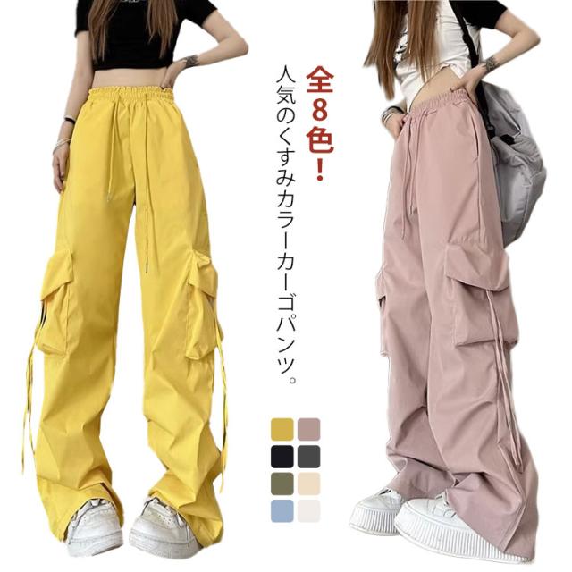 薄手 長ズボン ハイウエスト レディース ストレートパンツ 夏 カジュアルパンツ ストリート系 ワイド 大きいサイズ カーゴパンツ ストリート系 ミリタリーパンツ ロングパンツ 春 夏 秋 軽い 薄い ウェストゴム