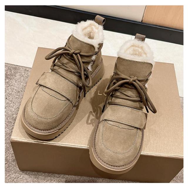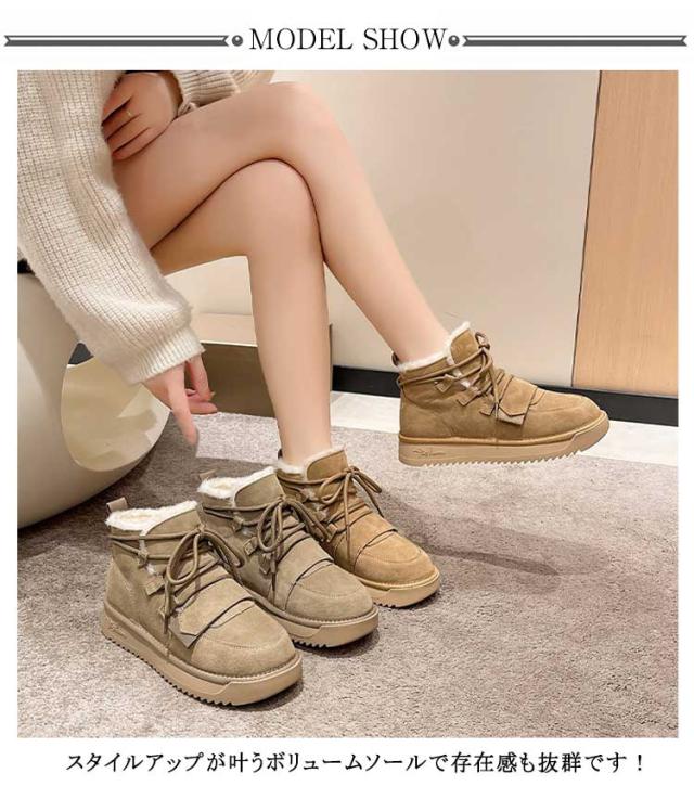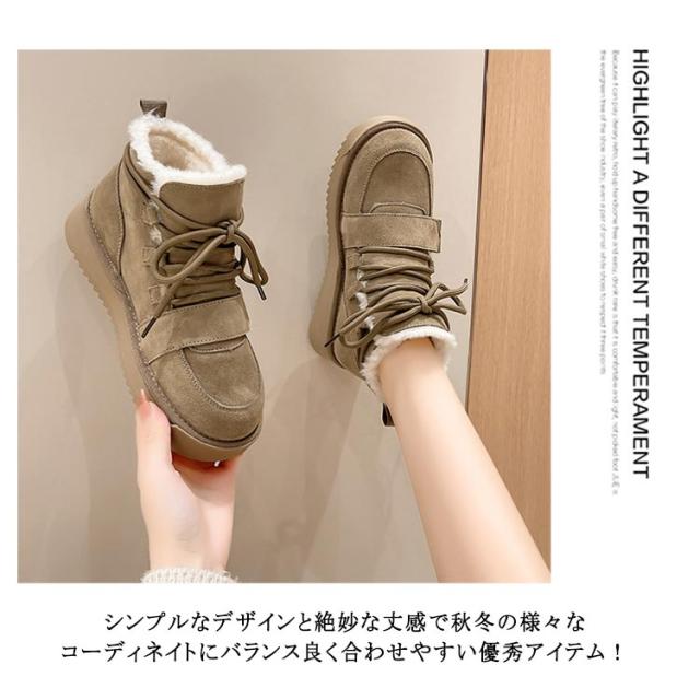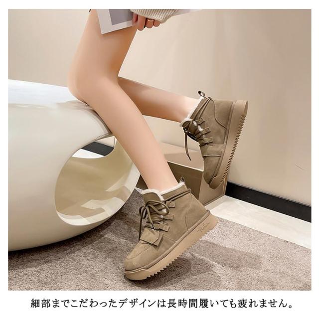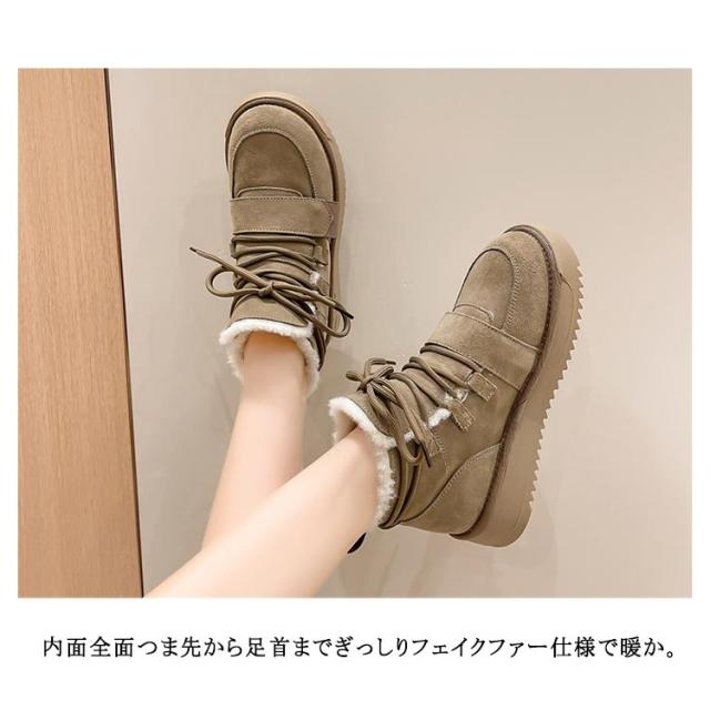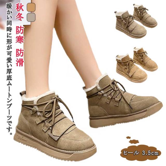 裏起毛 ムートンブーツ 厚底 レディース ブーツ ショート ショートブーツ レースアップ 編み上げブーツ ヒール 3.5cm スノーブーツ 痛くない 歩きやすい 疲れない 厚底ブーツ 秋 冬 靴 裏毛 生地 ボア ファー 長靴 防寒 暖かい あったか 滑り止め 通勤 通学 脚長 おしゃれ