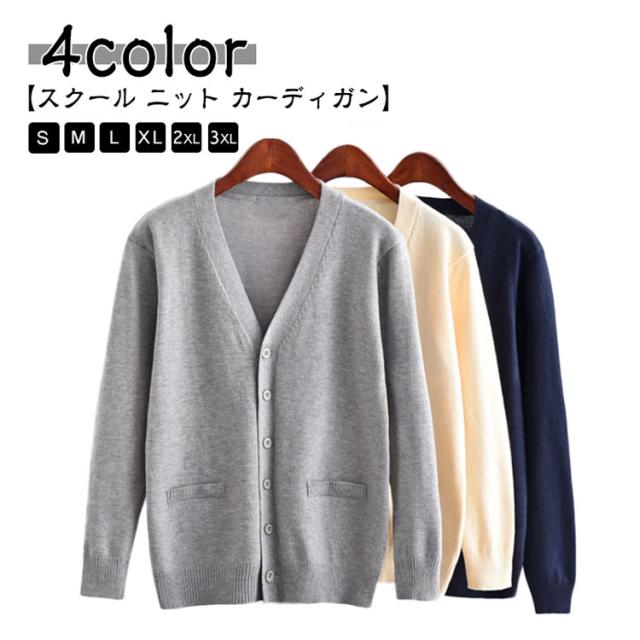 スクール カーディガン 制服 ニットカーディガン Vネック スクールカーディガン セーター 女子 学生 男子 高校生 学生服 羽織り 春 秋 冬 中学生 通学 学校 防寒 紺 ネイビー グレー 黒 ベージュ ブラック ジュニア フォーマル 入学式 スクールセーター