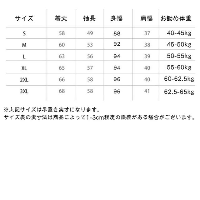 | サイズ | S M L XL 2XL 3XL |