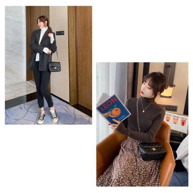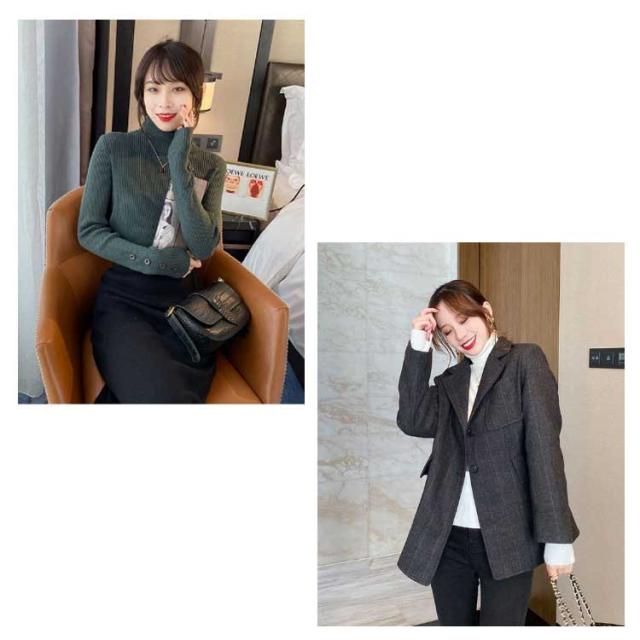 | 袖ボタン付き、タイトリブニットトップス。 に使えるタートルニットですが袖のボタンがポイントになり上品な印象に。 ストレッチのきいた伸縮性のあるリブ編みニットを使用。 女性らしさ高まるサイズ感と身体にフィットする着心地の良さを感じられるトップスです。 首元まであたたかいタートルネックが冬本番まで活躍してくれる1枚です! 1枚での着用はもちろん、インナートップスのニットとして、着回しのきくボタンデザインタートルリブニットです。 | |