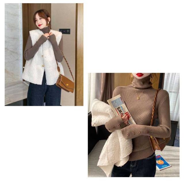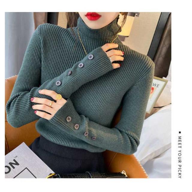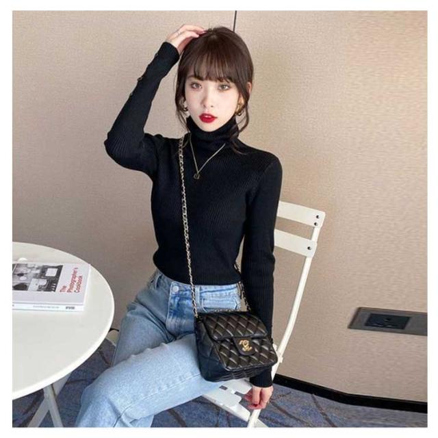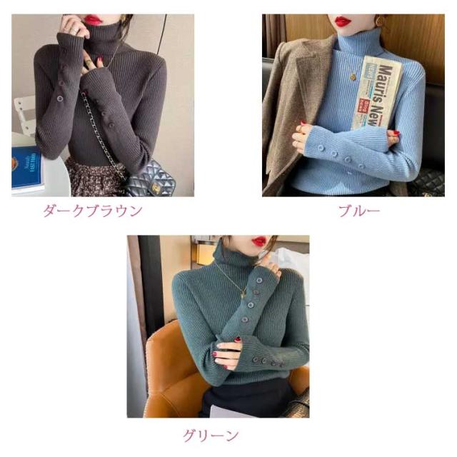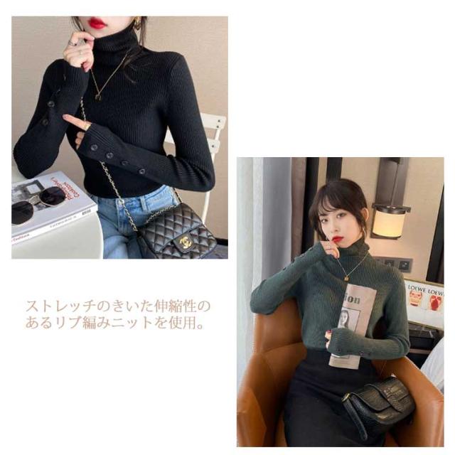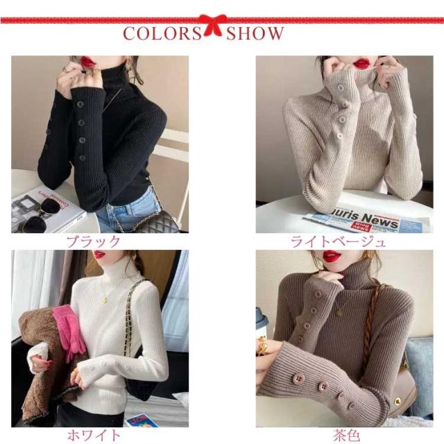 ニット トップス レディース セーター ハイネック リブニット 袖ボタン タイト 細身 ニットセーター タートルネック インナー ニット 秋 冬 あたっか 防寒 秋服 冬服 2025 きれいめ 無地 シンプル 大きいサイズ おしゃれ 30代 40代 50代 【送無】