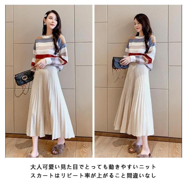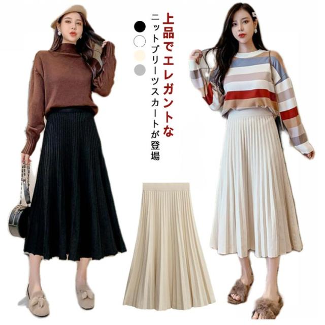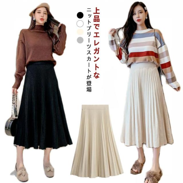 スカート ニットスカート プリーツスカート ロングスカート ボトムス ニット ロング ウエストゴム Aライン ニットプリーツスカート 大人かわいい 春 秋 冬 大きいサイズ レディース おしゃれ 人気