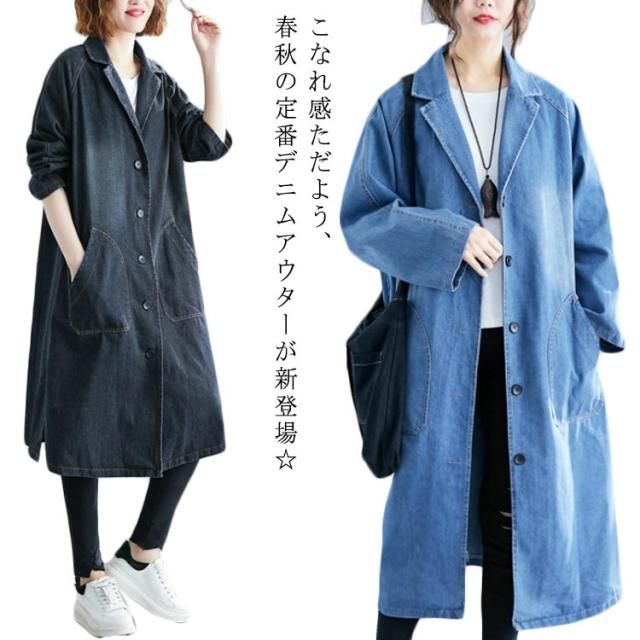 デニムコート チェスターコート デニム ロングコート レディース アウター コート ロング丈 長め丈 オーバーサイズ ゆったり 体型カバー 春 秋 カジュアル おしゃれ 送料無料
