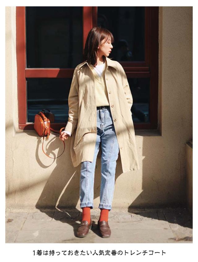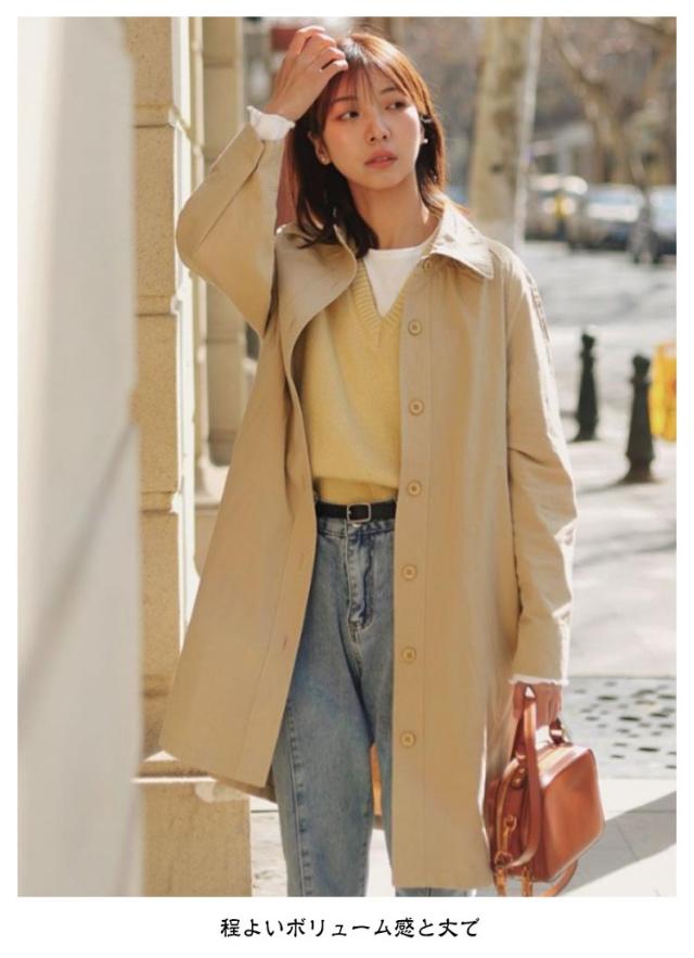 | 程よいボリューム感と丈で1着は持っておきたい人気定番のトレンチコート 柔らかい素材感でしっかり長さがあるのに軽くて羽織りやすい着心地の良い素材が魅力です ロング丈&ゆったりとしたシルエットで体型カバー効果も期待できます。 カジュアルなスタイリングにプラスして大人っぽく着こなすのはもちろん、通勤用の羽織りとしてきちんと感のあるスタイリングにもオススメです | |