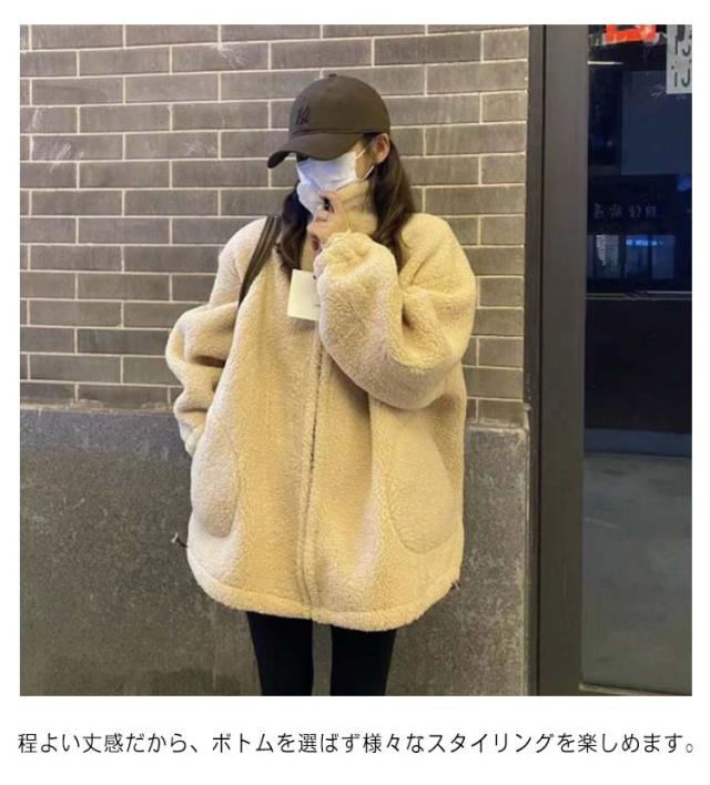 レディース ボアアウター アウター もこもこ ジャケット ボアアウター あったか 防寒 上着 羽織り 長袖 スタンドカラー ジップアップ ポケットあり ゆったり 厚手 秋
