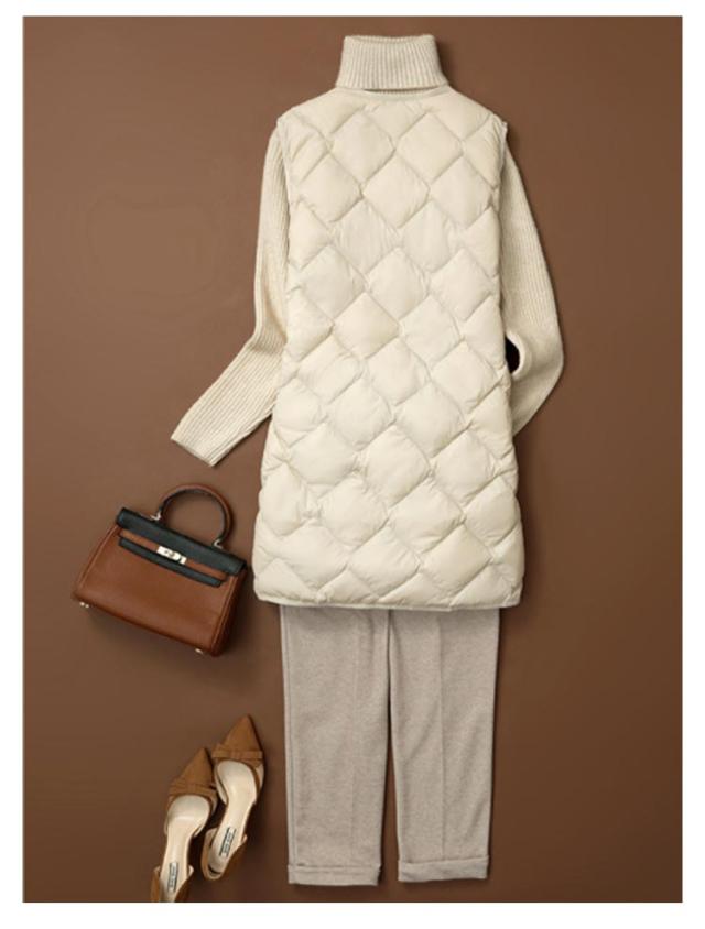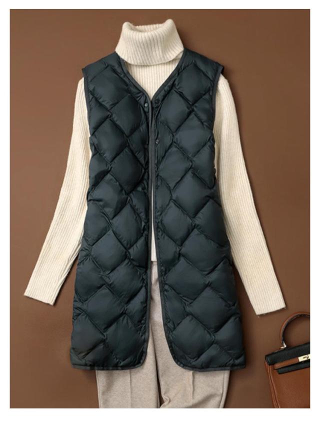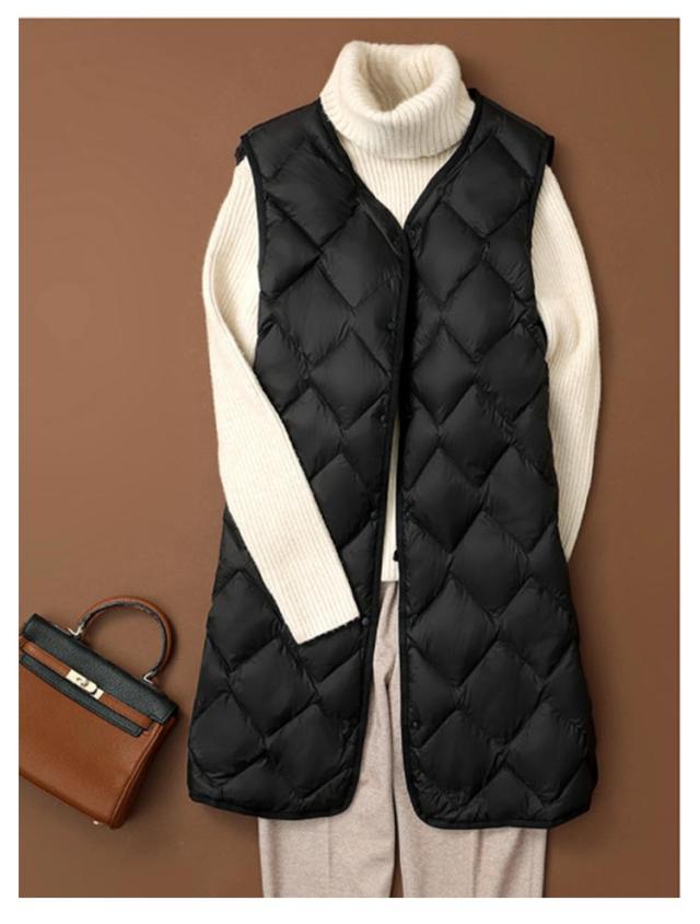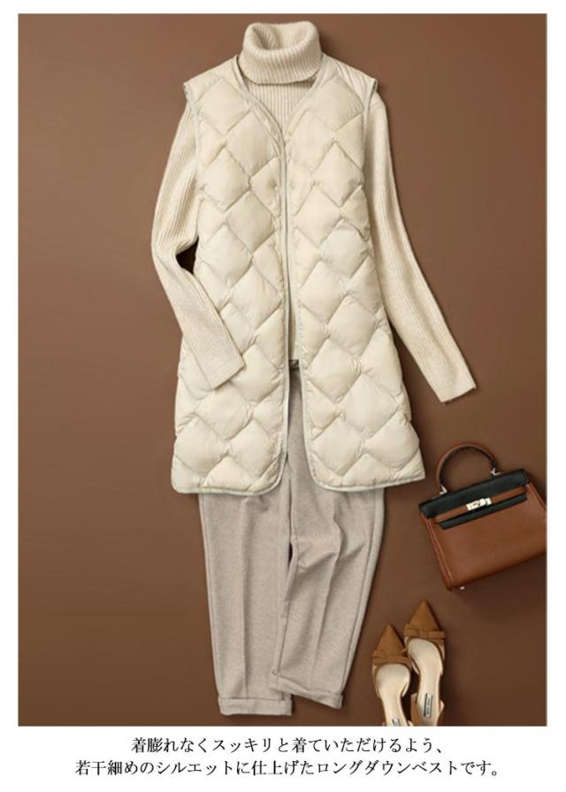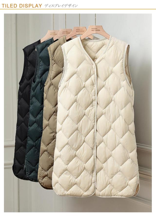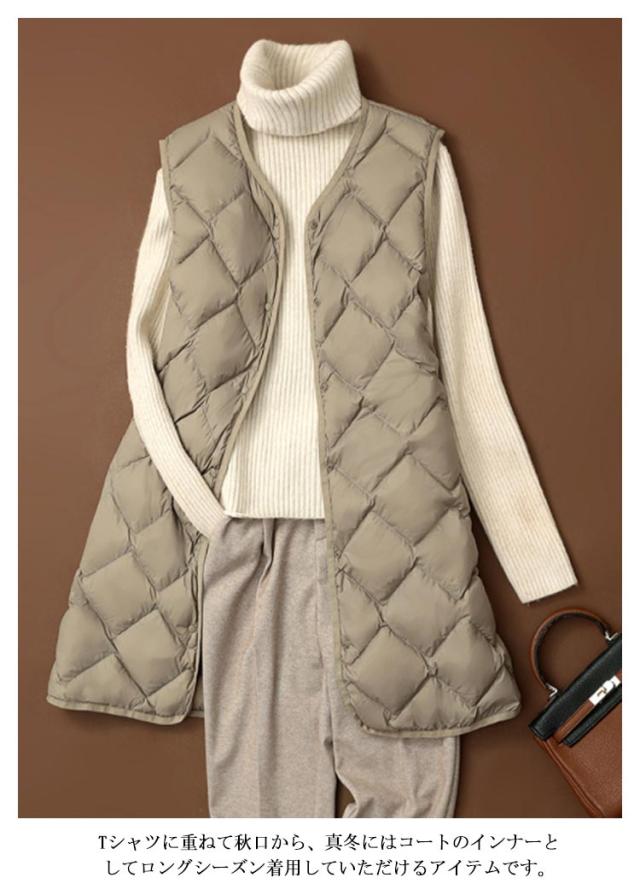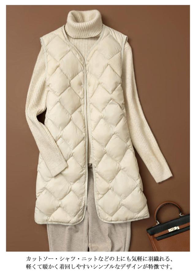 ダウンベスト ロング ポケットあり 収納 ノーカラー ダウンジャケット ダウンアウター Vネック レディース アウター ボタン 超軽量 おしゃれ インナーベスト 前開き インナーダウン コンパクト 誕生日 ポケッタブル 防寒 ダウンベスト 贈り物 祖母 お祝い 敬老の日 秋
