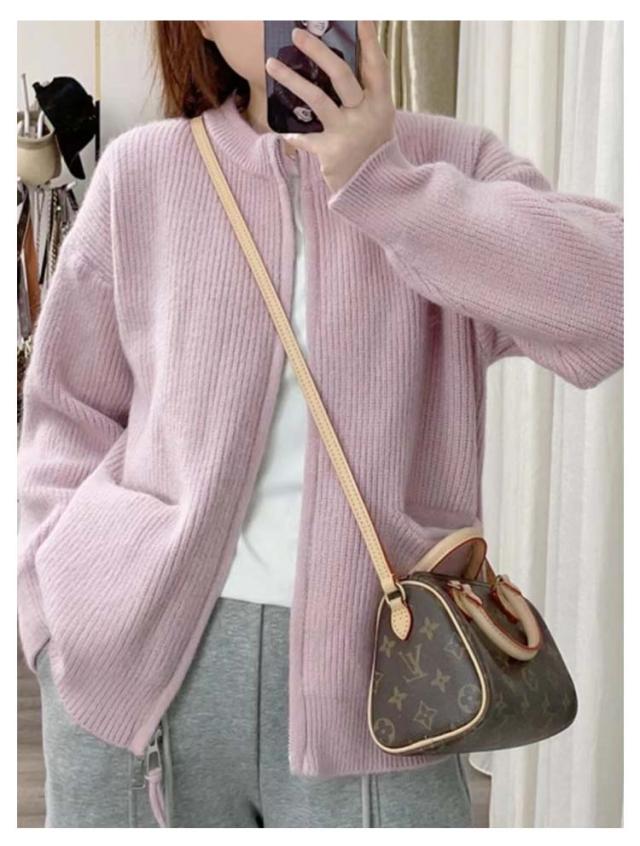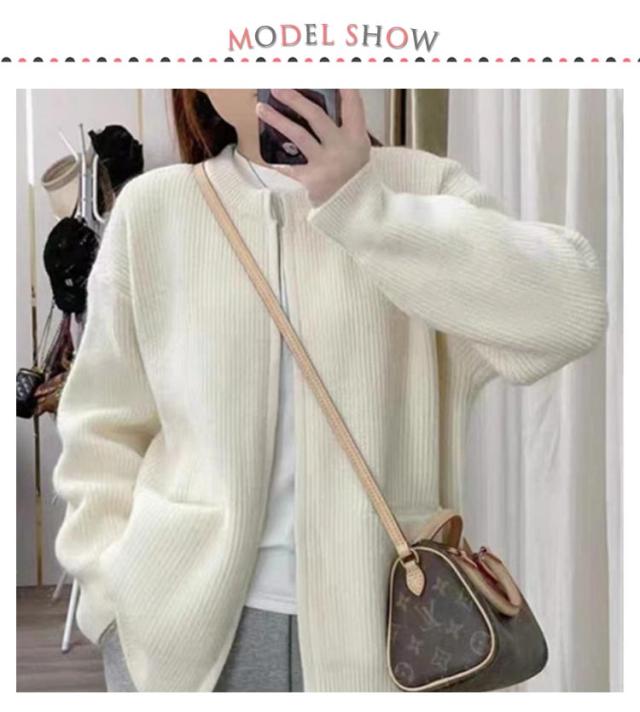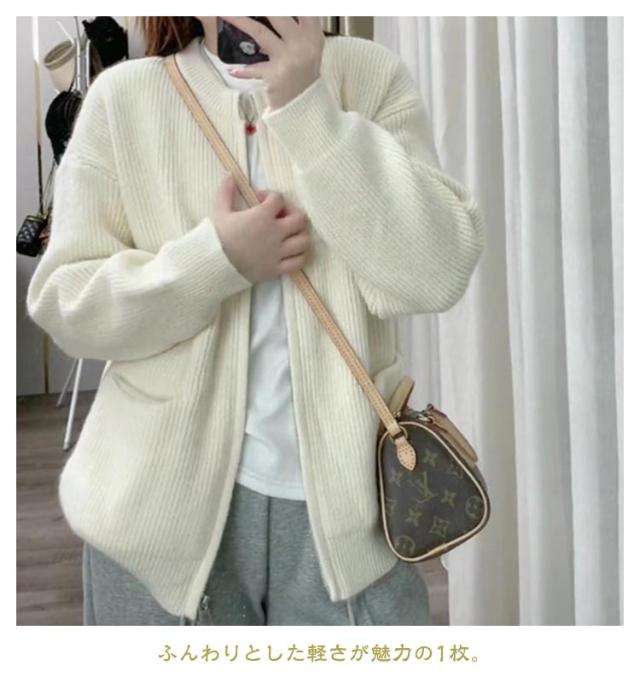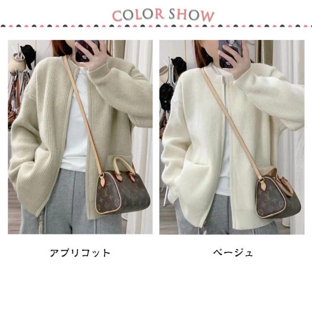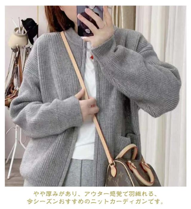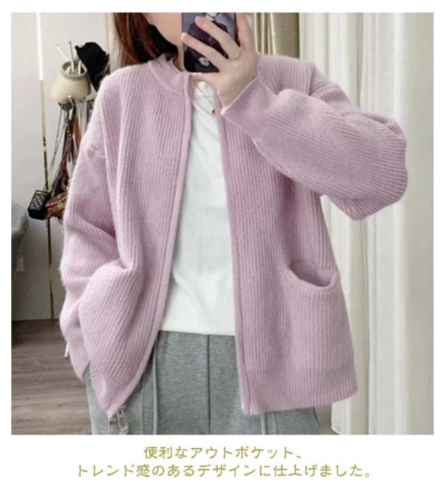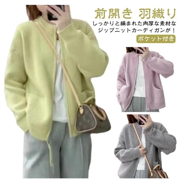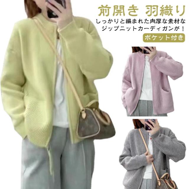 ジップ ニット カーディガン レディース ニットカーディガン ノーカラー ポケット アウター 羽織り ジャケット 前開き ふわふわ トレンド感 暖か 厚手 春 秋 冬 きれいめ 上品 カジュアル 無地 韓国ファッション