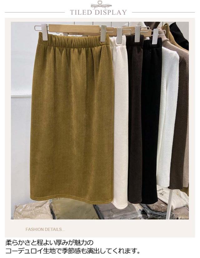 コーデュロイ スカート レディース ロングスカート コーデュロイスカート タイトスカート スリット ウエストゴム 裏起毛 あったか Aライン スカート ハイウエスト 秋 冬 ボトムス 防寒対策 冬服 きれいめ 送料無料