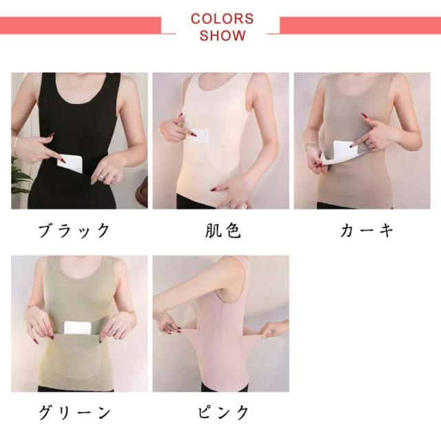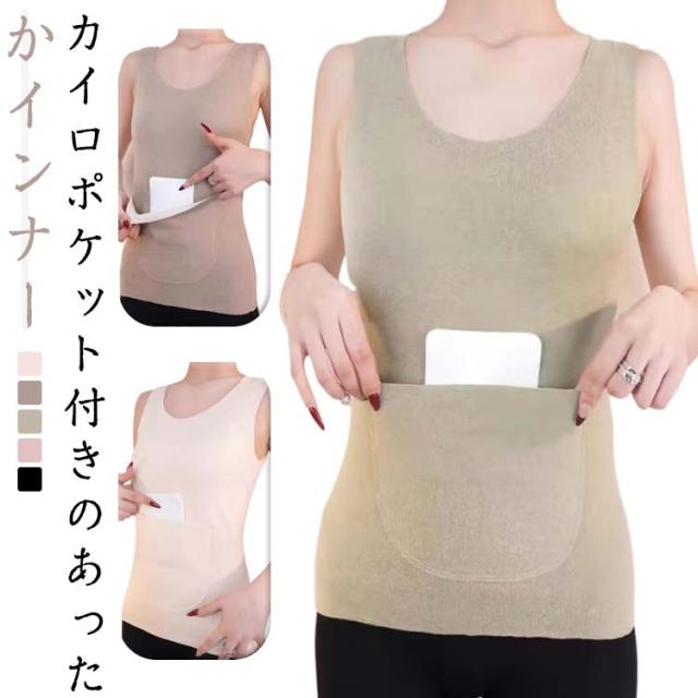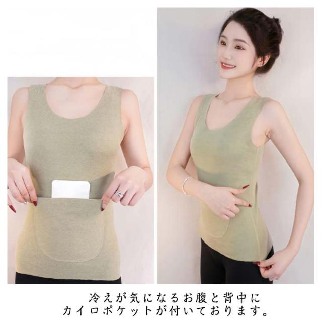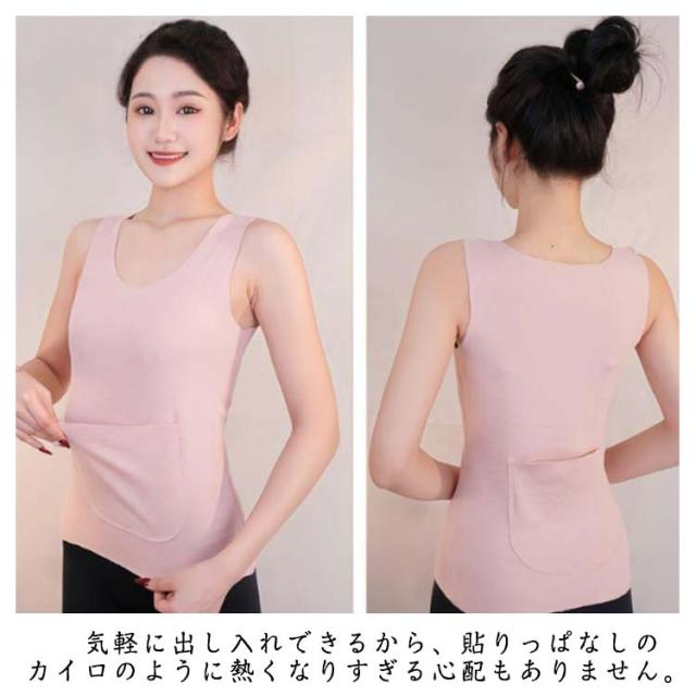 ポケット付き 両面起毛 カイロポケット タンクトップ 冷え取り タンクトップ インナー 腰 裏起毛 秋 冬 お腹 レディース 対策 健康 あったか 暖かい