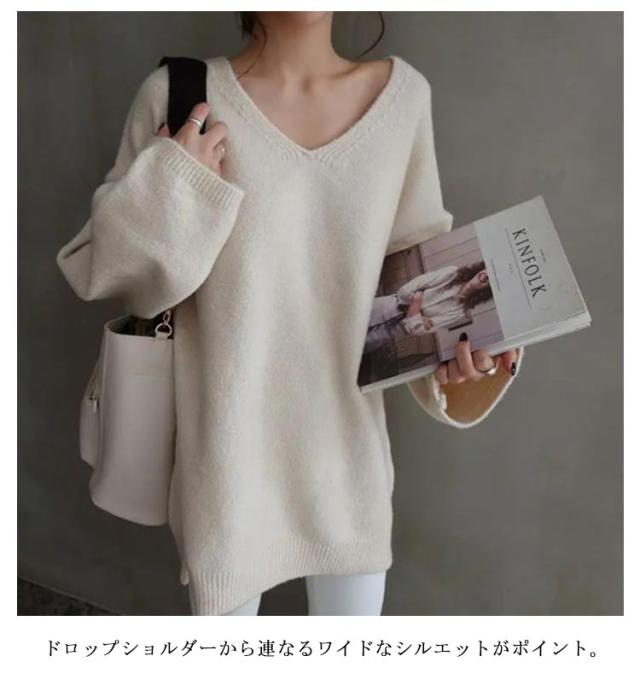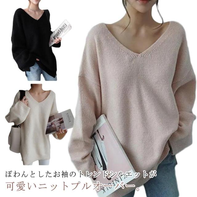 冬 セーター ニット セーター レディース 秋 vネック 長袖 トップス 着やせ ニットセーター ゆったり バルーンスリーブ バルーン袖 ゆるニット 大きいサイズ フィット シンプル 無地 オフィス 通勤 体型カバー 20代 30代