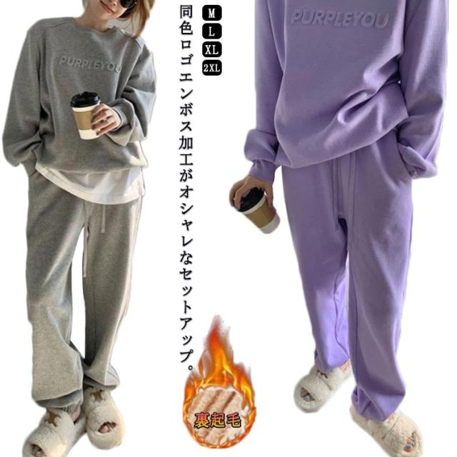 ルームウェア 韓国 レディース セットアップ 上下セット オシャレ 韓国ファッション エンボス加工 ロゴ スウェット パジャマ 長袖 パンツ ボトムス あったか 秋 冬 春 秋冬 防寒 大きいサイズ 大人可愛い 修学旅行 外出 スポーツウェア