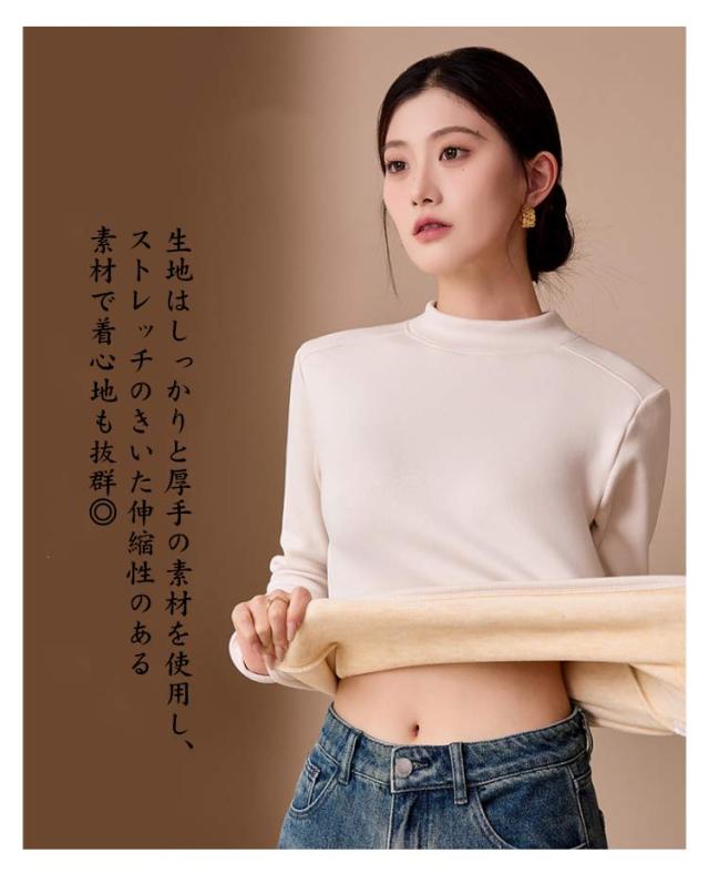 裏起毛 長袖 トップス インナー 裏起毛 レディース tシャツ 保温 秋 冬 無地 インナー ハイネック カットソー 防寒 裏起毛 肌着 あったか 暖かい シンプル 無地 伸縮性 シンプル