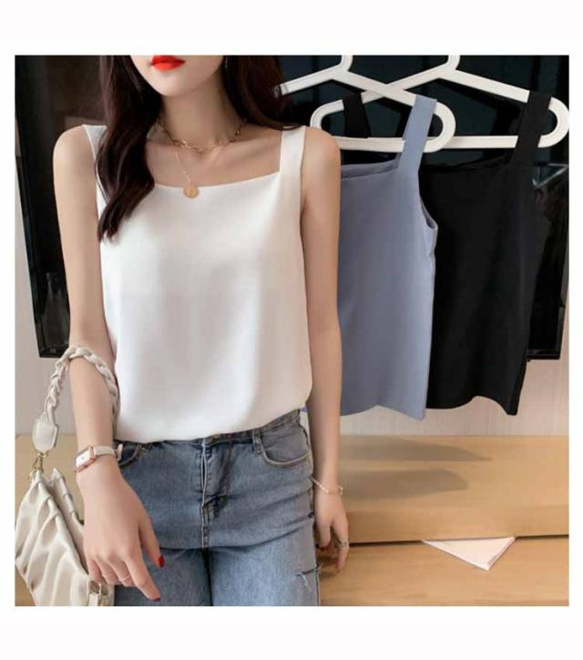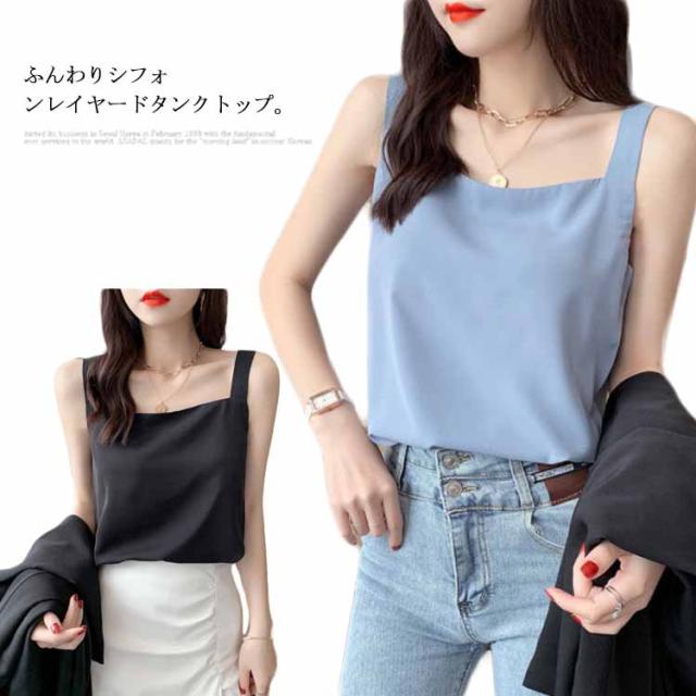 タンクトップ レディース シフォン インナー スクエアネック ノースリーブ おしゃれ フォーマル オフェス 春 夏 秋 ブラック ホワイト ブルー S M L XL 送料無料
