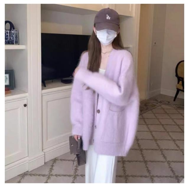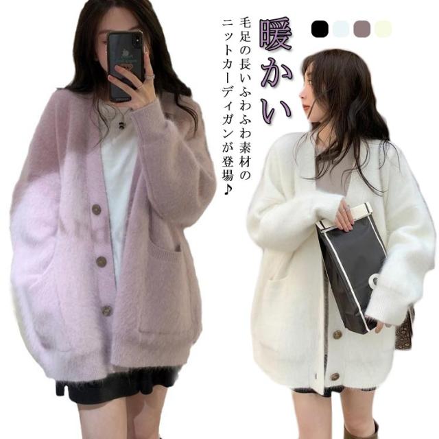 ニットカーディガン レディース ふわふわ カーディガン Vネック 長袖 アウター ニットコート モコモコ 暖かい 防寒 ゆったり 重ね着 羽織り 無地 秋冬 冬服 きれいめ カジュアル 韓国 春 秋 冬 コーデ 送料無料