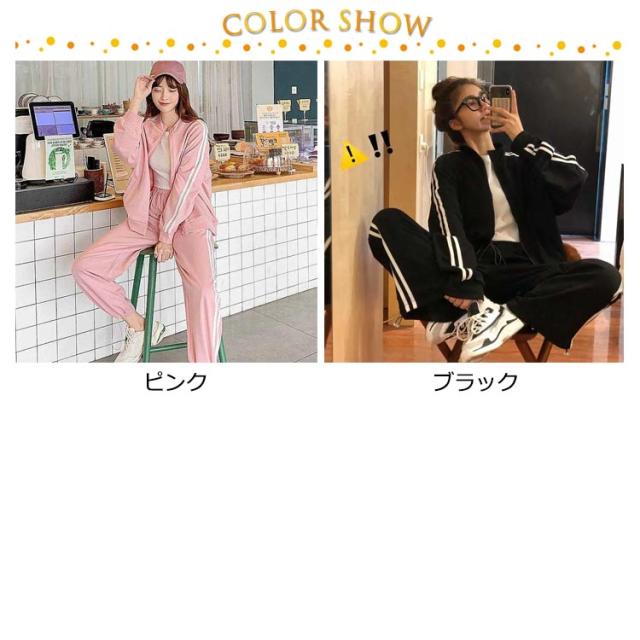| デザイン性を保ちつつ、動きやすいしっかりしたスエット生地を採用し、飽きの来ないデザインなので春夏秋冬に最適! シンプルなデザインながらも、徹底的に拘りぬいたシルエットのデザインが、着るだけで存在感のあるスタイリングに仕上げてくれます。 上着はジッパー式なので、着脱しやすく気軽にさらっと着れちゃいます。上着とパンツ両方にポケットが付いていて実用性もバッチリです。 通気性・吸湿性に優れたレディースカジュアルセットは、柔らかい綿生地を使用して、快適な着心地が実現できます。 またカジュアルな感じなので年齢{ 10代、20代、30代、40代、50代 }問わずお使いいただけます。 | |