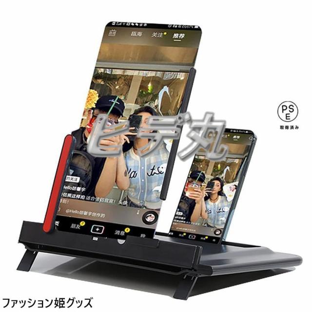 12インチ スクリーンアンプ 2in1 スマートフォン用画面拡大鏡スタンド 卓上 スマホスタンド 横?縦設置対応 HD 携帯画面拡大鏡 スタンド折り畳み式 携帯便利 軽