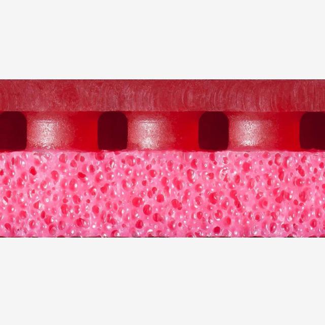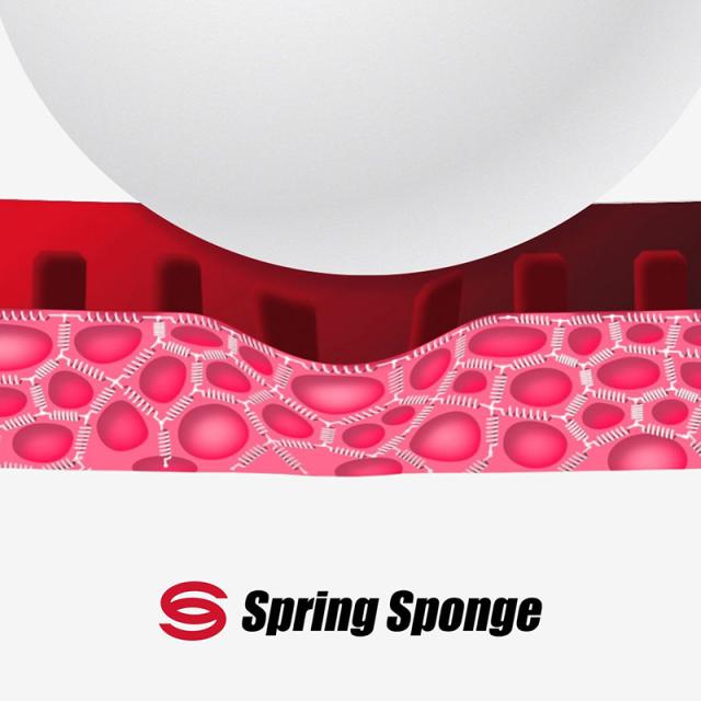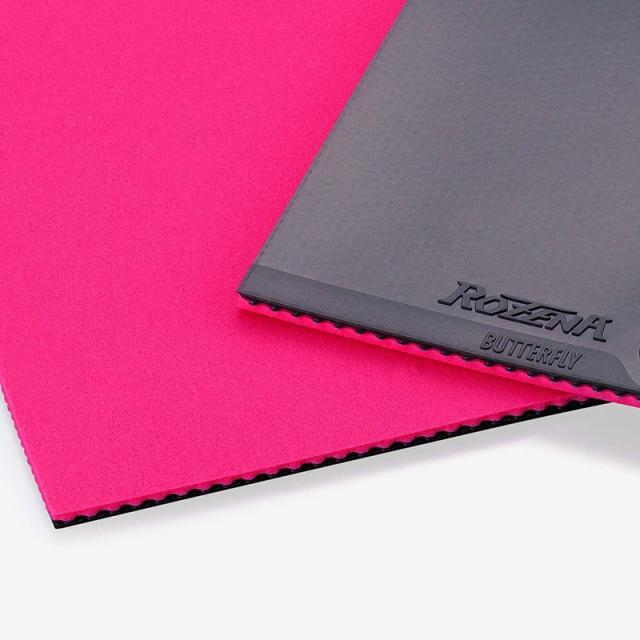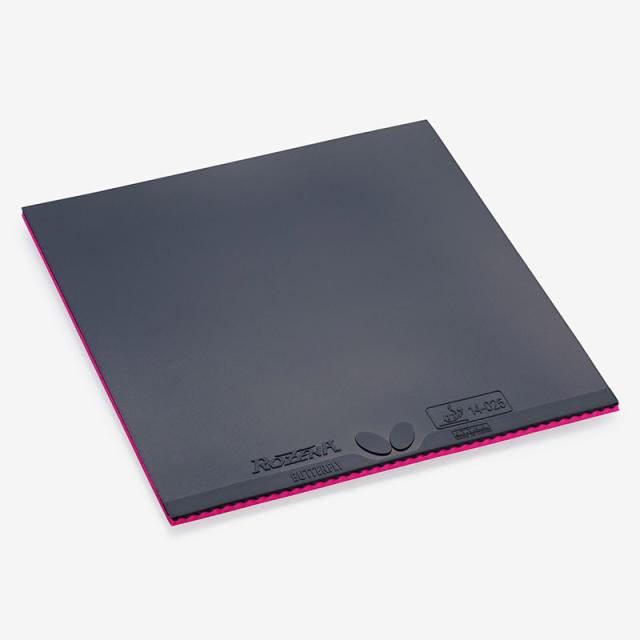 ロゼ色に染められた「スプリング スポンジ」と専用のトップシートとの組み合わせによる“トレランス” の高さが特長です。バタフライ独自のハイテンション技術によって十分な威力を発揮しながらも、微妙なラケット角度やスイング方向の誤差を補い、プレーに安定感を生み出します。