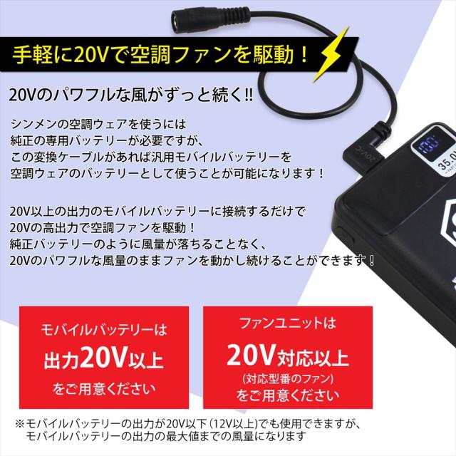 シンメン S-AIR 対応 変換ケーブル 2025年 20V SA-125 SA-225 2024年 SA-124 2023年 SA-123 対応 Type-C 変換アダプター モバイルバッテリー 20V ファン付き作業服 Type-C USB-C タイプC 昇圧コンバータ 空調ウェア 空調ファン 【20V-C】