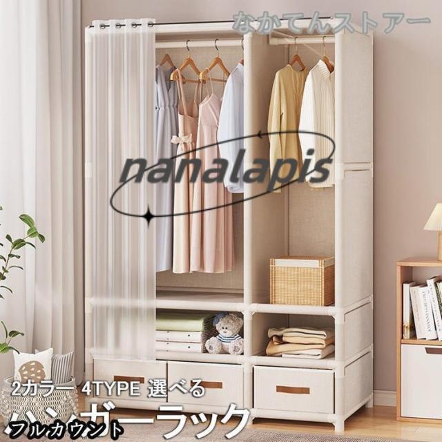 ハンガーラック おしゃれ 収納 カバー付き 引き出し付き スリム ハンガー掛け クローゼット コート スチール シェルフ ラック 省スペース 押し入れ 棚 衣類収納