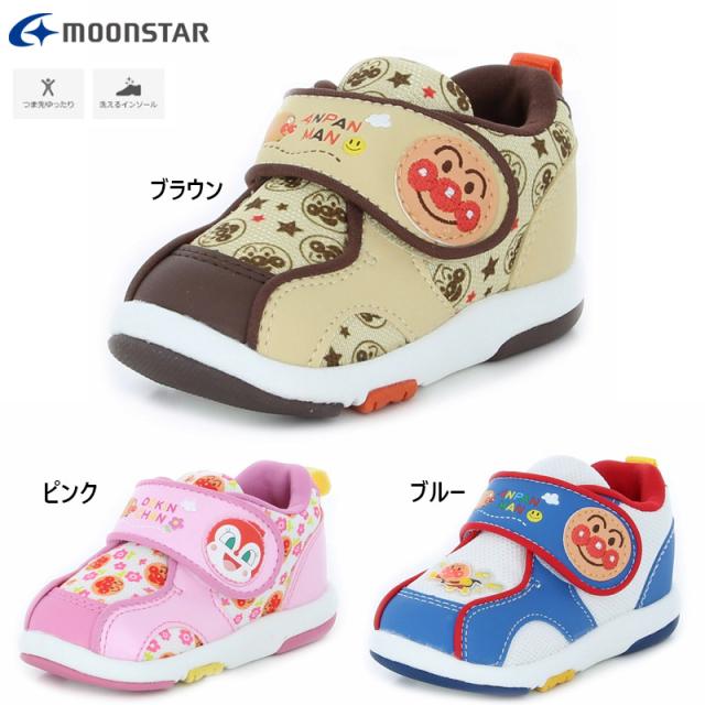 2E ムーンスター ベビー キッズ アンパンマンベビー08 男の子 女の子 キャラクター 靴 シューズ ブルー ブラウン 青 ピンク 茶色 送料無料 MoonStar 12113324 12113325 12113327