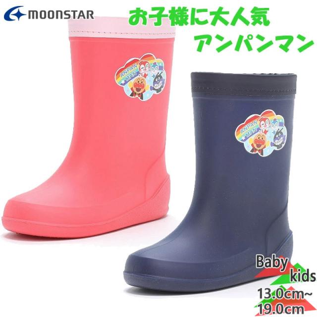 ムーンスター ジュニア キッズ アンパンマン ロンプ C66 男の子 女の子 レイン 長靴 雨靴 靴 シューズ 通園 通学 梅雨 キャラクター ネイビー ピンク MoonStar 13110184 13110185