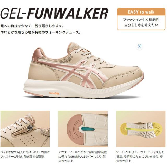 アシックス ウォーキング レディース GEL-FUNWALKER W053 ゲルファンウォーカー スニーカー 靴 シューズ ウォーキング 旅行 散歩 負担軽減 ファスナー ブラック 黒 グレー ネイビー ベージュ 灰色 送料無料 asics walking 1292A053