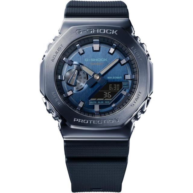 G-SHOCKの初代モデル“DW-5000C”にも採用された“八角形フォルム”を継承するGA-2100シリーズから、メタル素材を採用したモデルです。