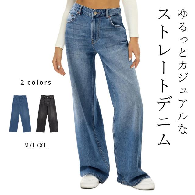 「春夏コーデを格上げするパンツ」 ワイド ストレート デニム レディース パンツ シンプル 使いやすい カジュアル ウォッシュ加工 デニムパンツ ワイドシルエット 大人 こなれ感 シンプルデザイン カジュアルコーデ 柔らかい 春 夏