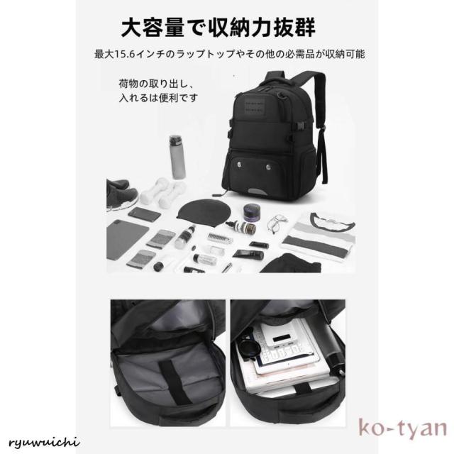 【収納力抜群】大容量で収納力と機能性が抜群。最大15.6インチのノートパソコンやA4サイズの書類や着替え、小物が収納しやすく出来ていて、とても便利です。サイドにメッシュのポケットが付いており、折り畳み傘、ペットボトルが収納でき。ジッパーポケットには、キーや財布などを収納できます。